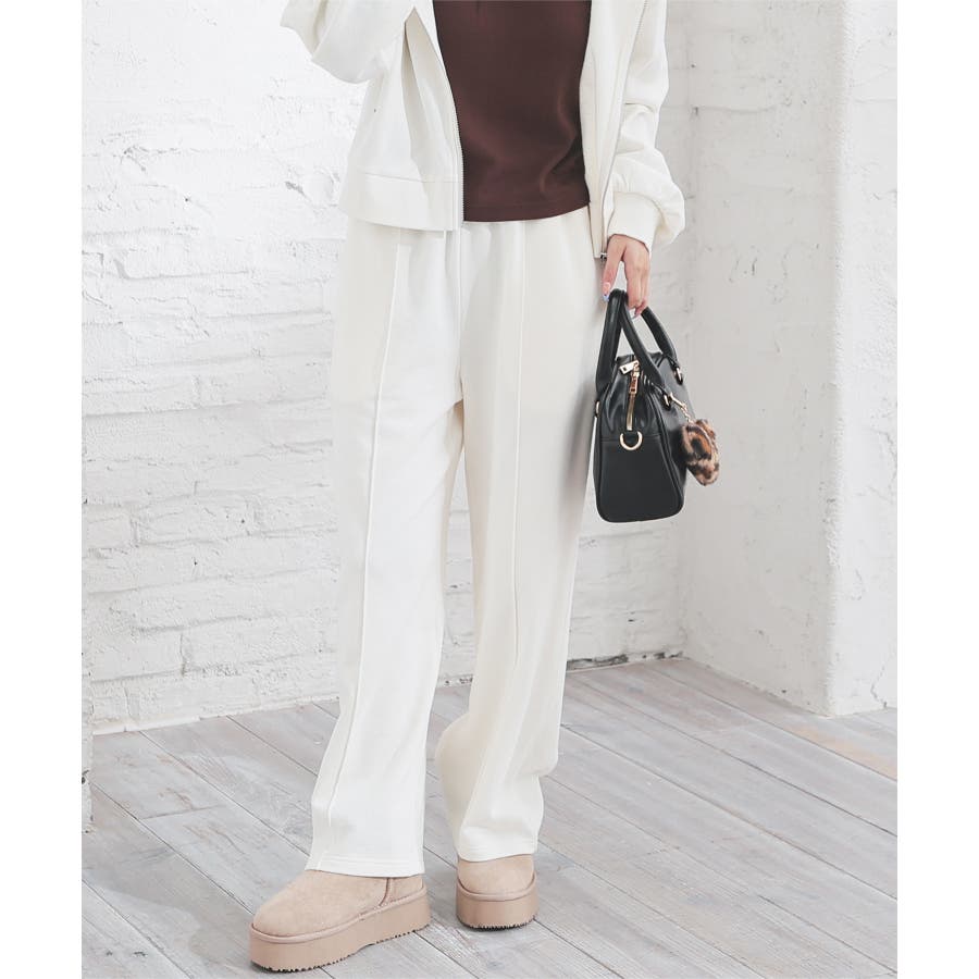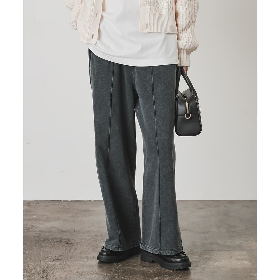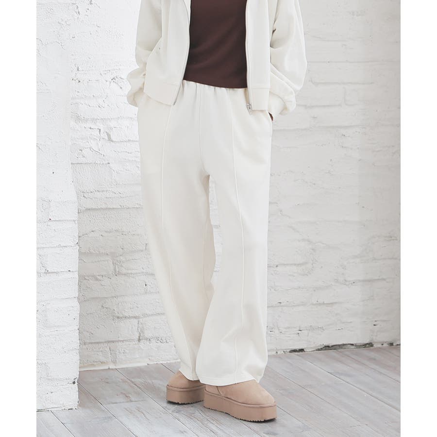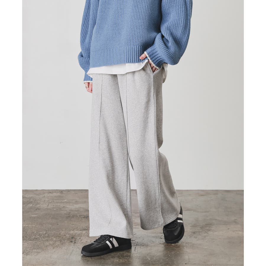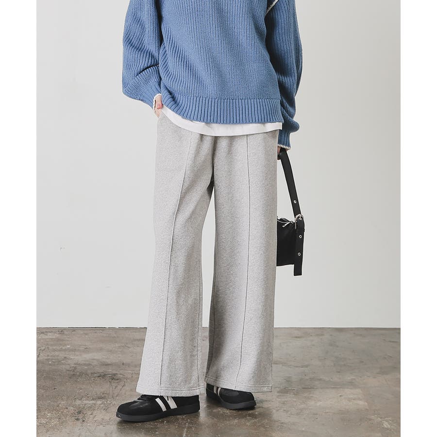 スウェットながらセンターシーム入りで、きちんと感も美脚効果も期待できるデザイン。