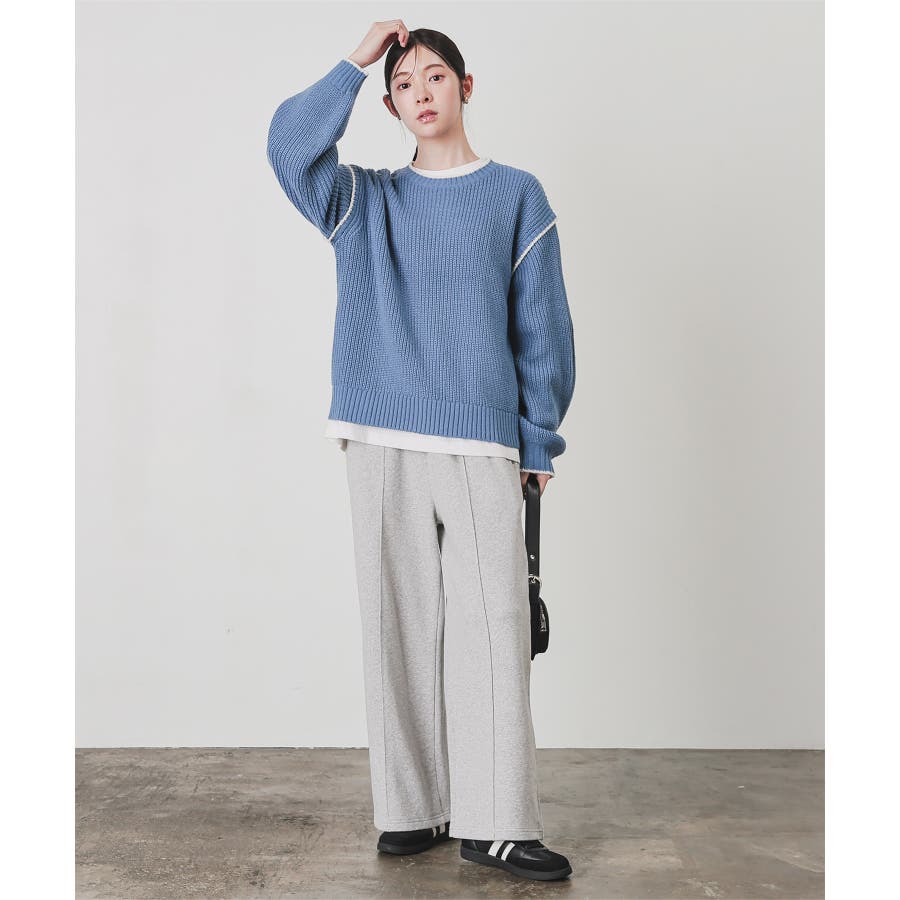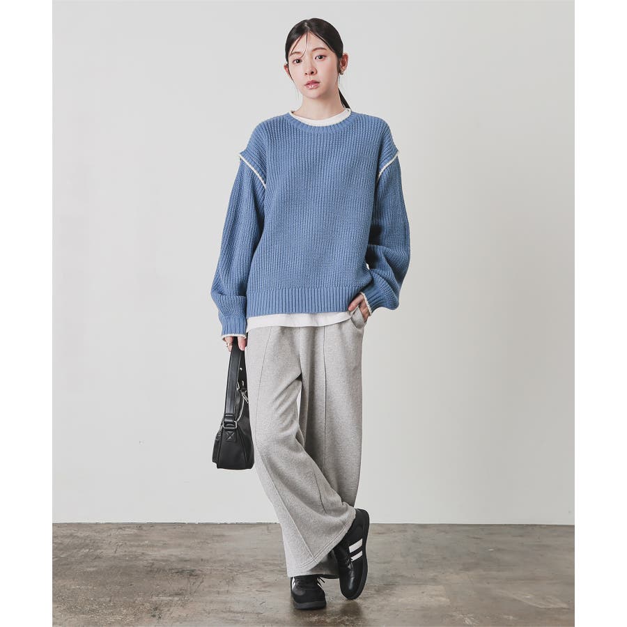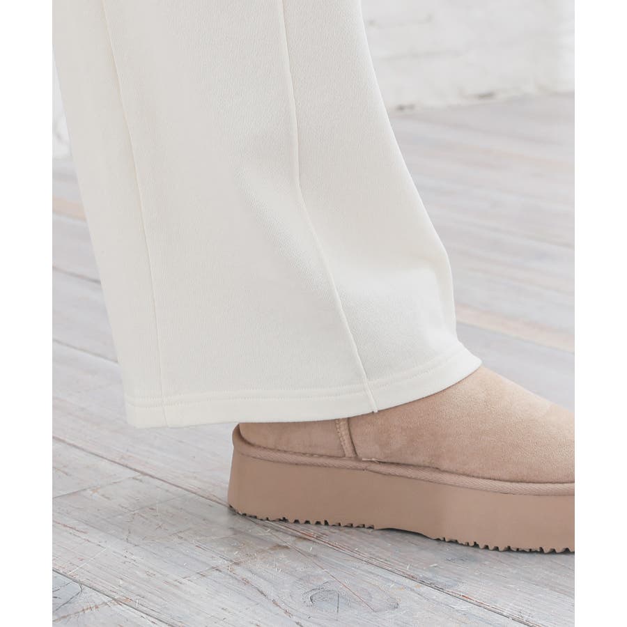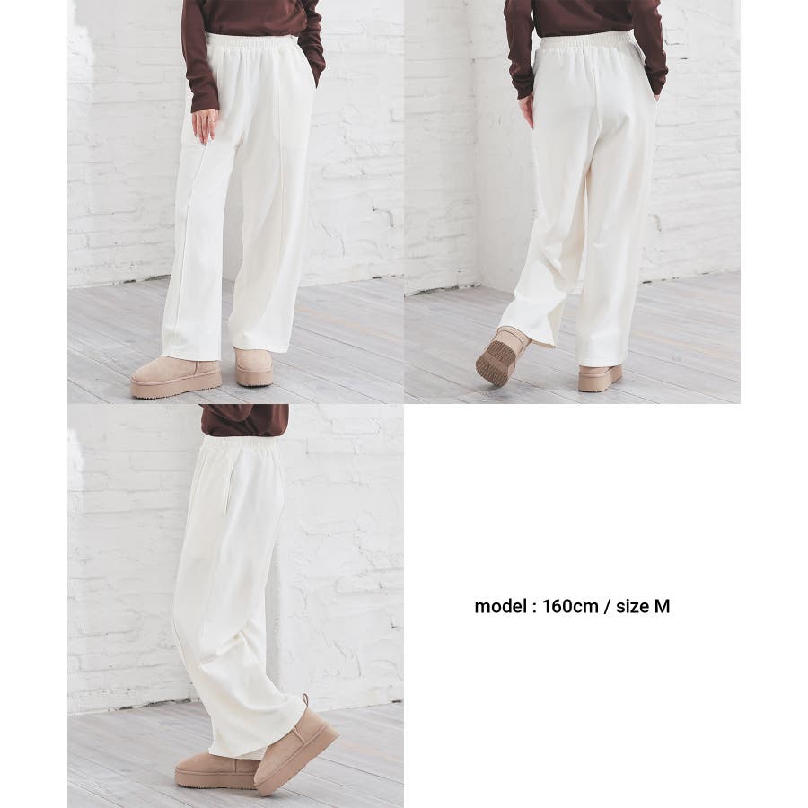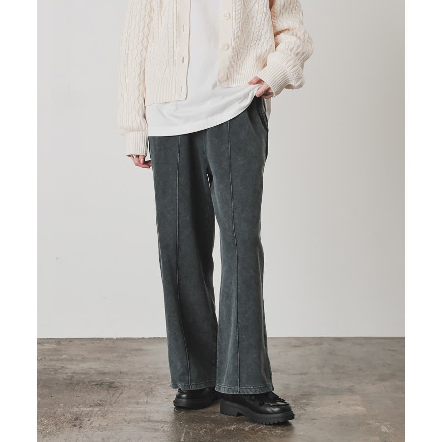 スウェットながらセンターシーム入りで、きちんと感も美脚効果も期待できるデザイン。