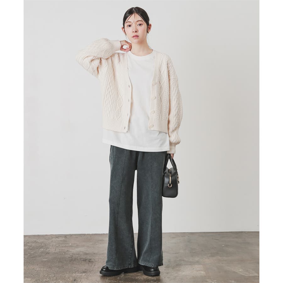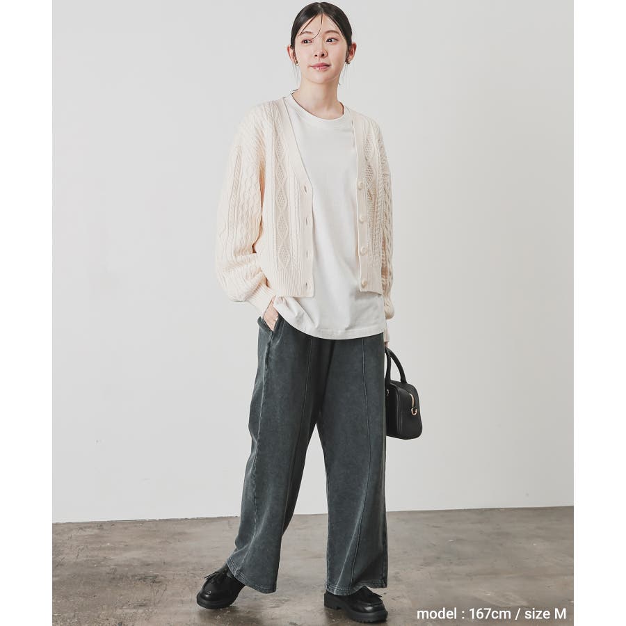 程よくゆったりとしたワイドシルエットで体のラインを拾いすぎず、体型もカバー。