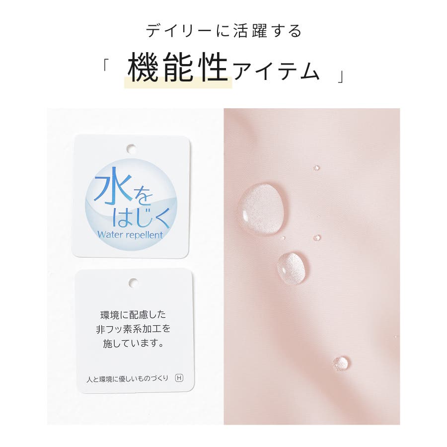 生地の表面は『非フッ素撥水加工』で、雨や雪の日も安心。