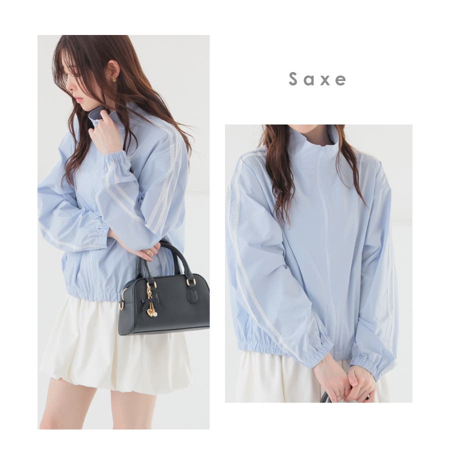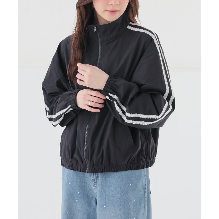 袖にレースのラインを入れた、フェミニン×スポーティーなデザイン。
