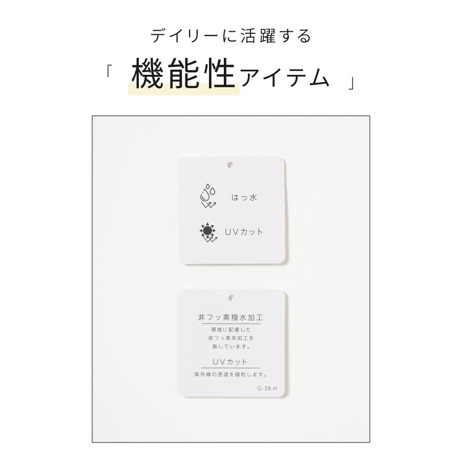 表面は、雨や汚れをはじく『非フッ素撥水加工』と、紫外線対策ができる『UVカット』の機能付き。