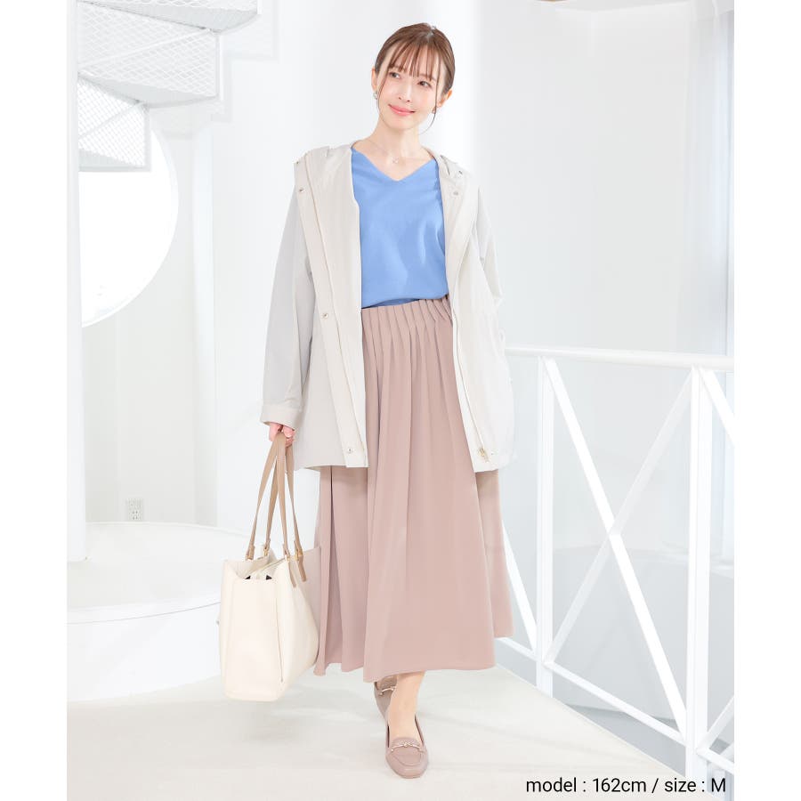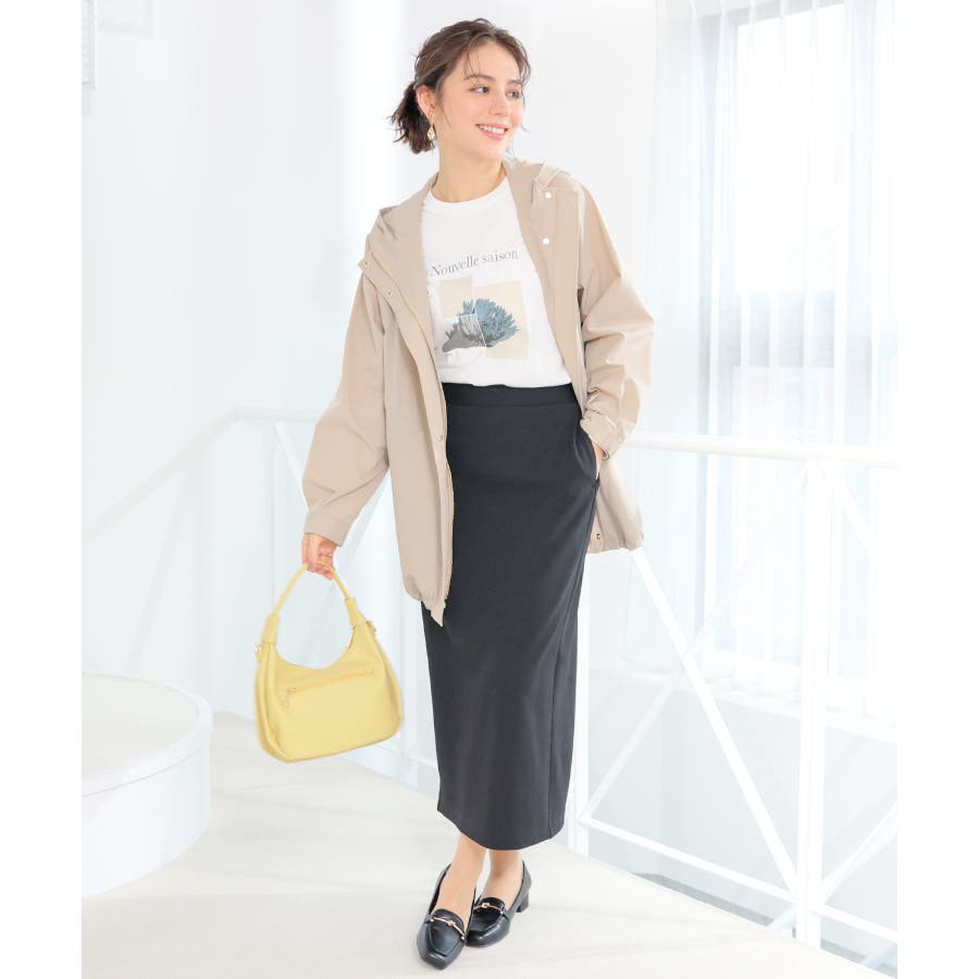 ゆったりした幅とヒップまですっぽり隠れる丈感で体型もカバー。