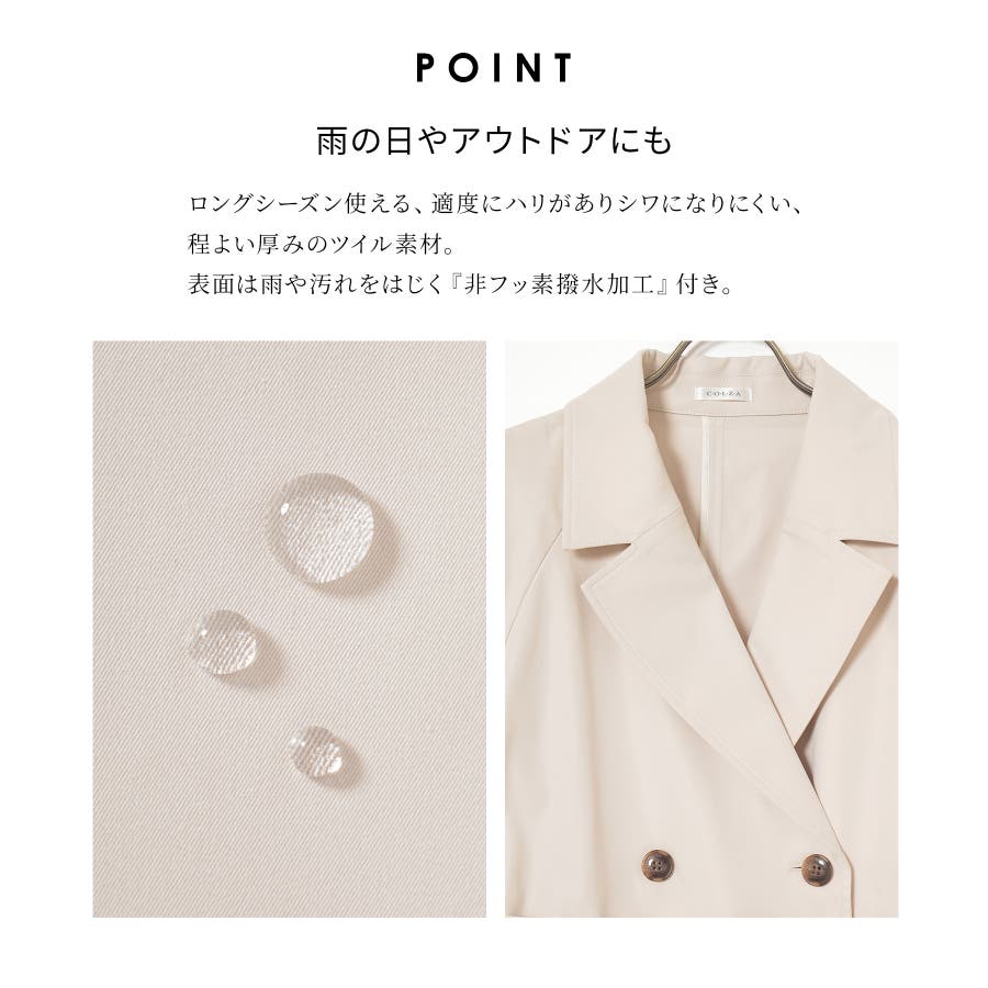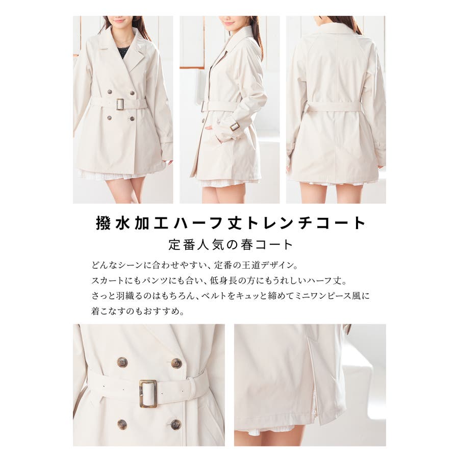 商品カテゴリ:7730438507 アウター はっ水 コート トレンチコート 撥水加工 ツイル素材 ベルト付き 無地 ポケット ガーリー 春 白 カテゴリ401000 outer jacket 上着 ジャケット 機能素材 水をはじく 梅雨 雨 水遊び 公園 汚れにくい 撥水 トレンチ ハーフ丈コート ハーフ丈ジャケット ツイル 共布ベルト 無地コート 無地トレンチコート 無地アウター ポケット付き カジュアル ガーリーカジュアル 女の子 女子 可愛い かわいい kawaii おしゃれ タグ非フッ素撥水加工 Sサイズ S 小さいサイズ Mサイズ Lサイズ LLサイズ LL 大きいサイズ FP401 高校生 大学生 10代 20代 若い 学生 スクール ティーン ティーンズ ヤング JK JD トレンド 流行 中学生 人気 シーズン春 春物 春服 春夏 初夏 夏 夏物 夏服 新作 新着 アイボリー ホワイト ネイビー 紺 ブルー 青 ベージュ 肌色 ピンク 桃色 ピンクベージュ 8507 773-43-8507 7730438507 COLZA コルザ honeys ハニーズ レディースファッション ladies fashion 女性 女 レディース ファッション 女性服 服 婦人服 773043850731 撥水加工ハーフ丈トレンチコート 価格4980