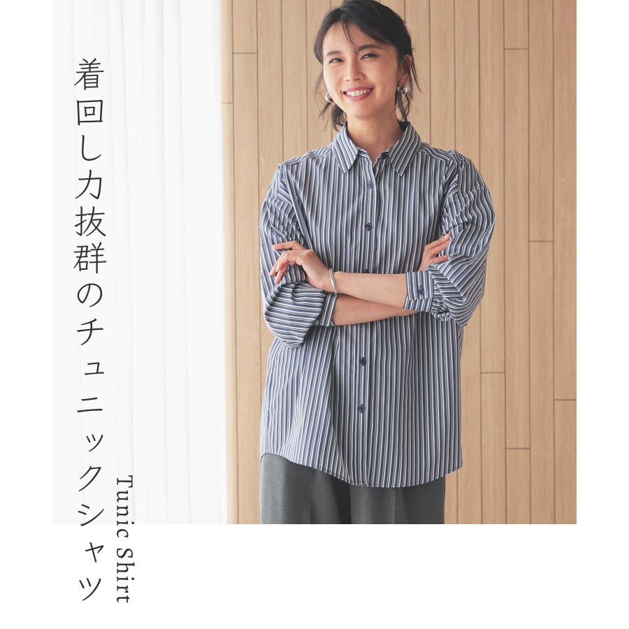 シンプルで着回し力抜群のチュニックシャツ。