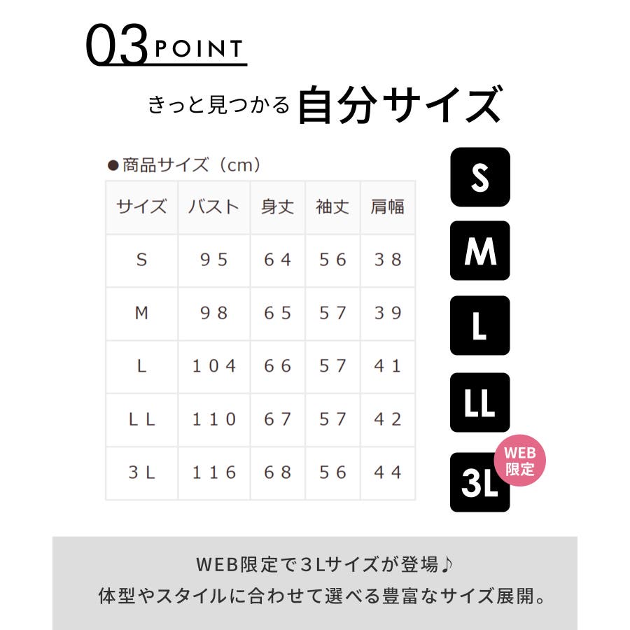 | サイズ | S / M / L / LL / 3L |