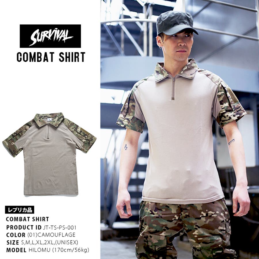 アフガニスタンでのテストに基づきアメリカ軍が採用し、今では世界のスタンダードとなりつつあるコンバットシャツが入荷。素材は堅牢度の高いリップストップ生地と伸縮性あるスムース素材の切替生地。ジップ付きポケットは両袖に2か所。ボディーアーマーとの併用を考慮してデザインされたサバゲーファン人気のアイテム。最大の特徴は、袖部分は普通の戦闘服のようになっていながら、ボディーアーマーと重なる部分、つまり胸、腹、背中の部分は、ポケットなどの不必要な機能が省かれ、通気性を考慮したデザイン。服の軽量化と暑い気候における吸湿発散性や快適性を高めることを目的として開発されたコンバットシャツを忠実に再現。迷彩パターンは様々な環境に適合する、オールラウンダーなマルチカム。