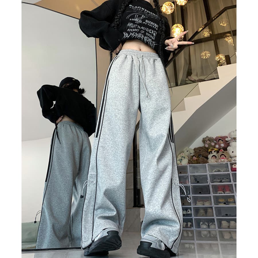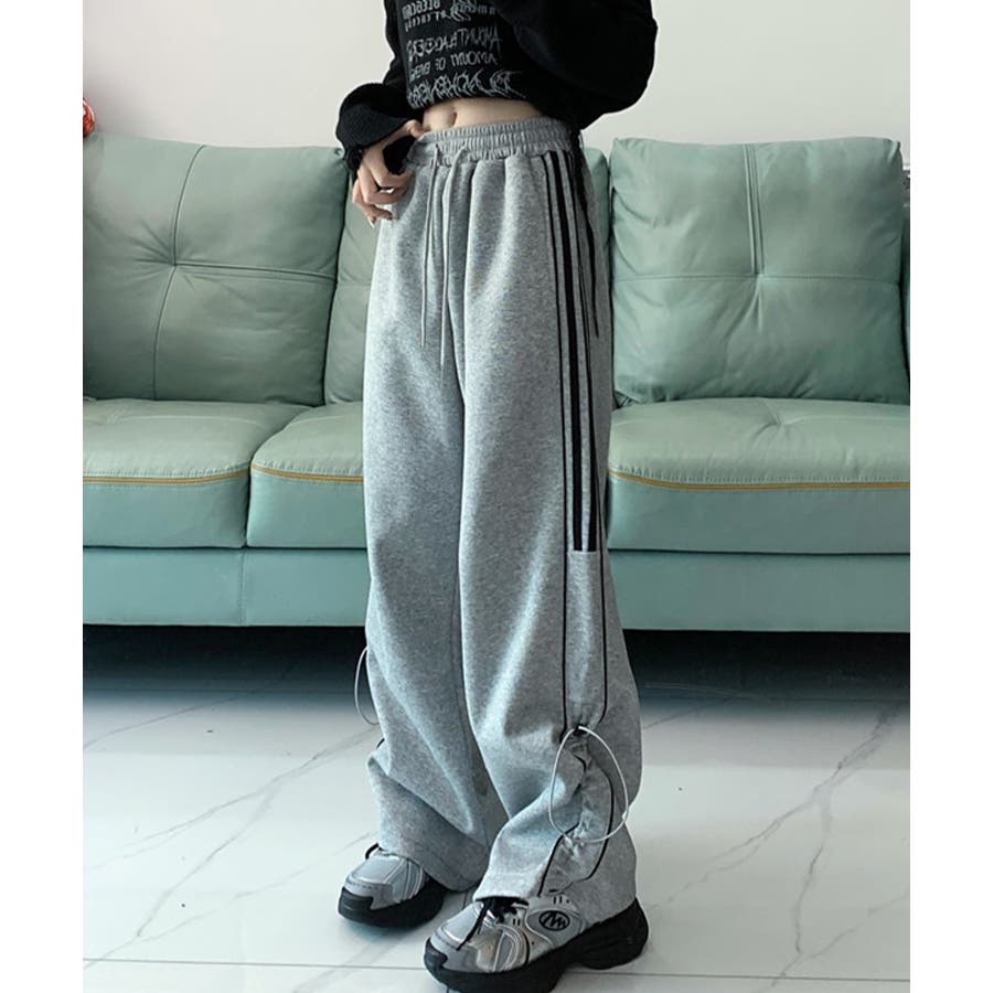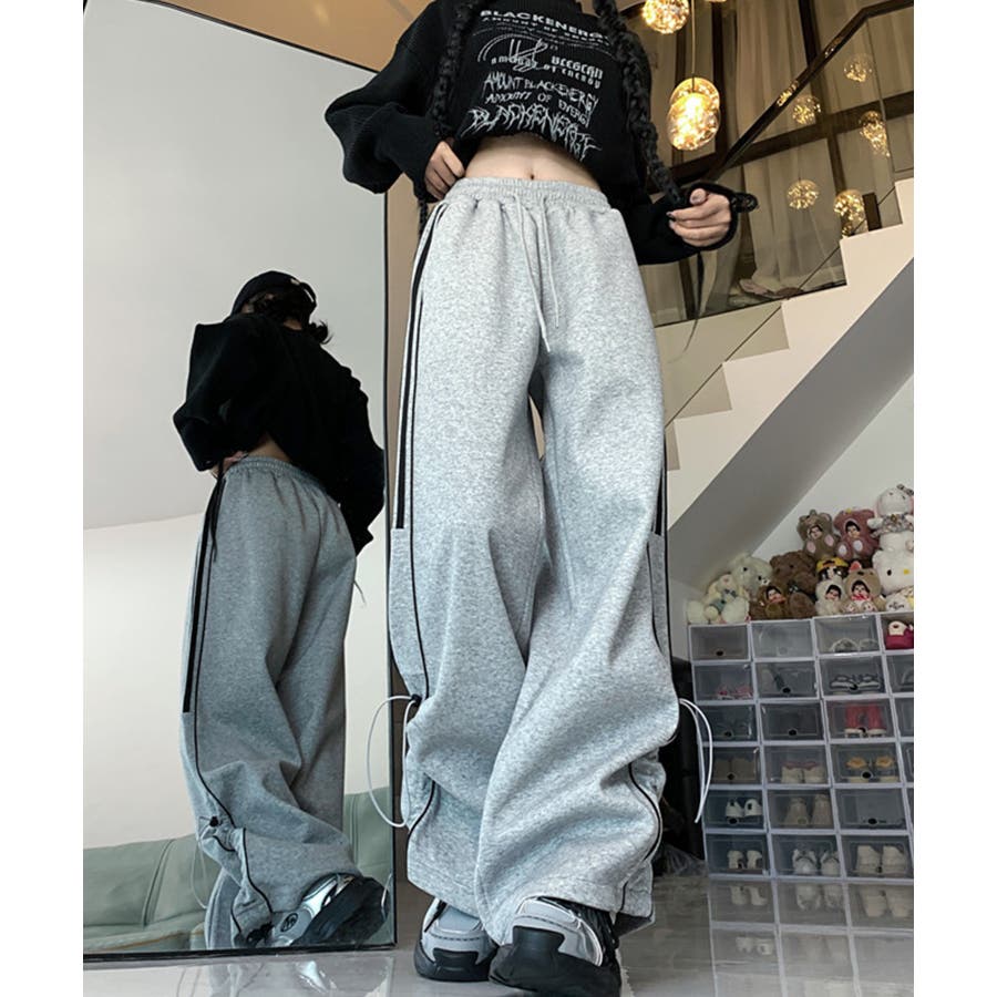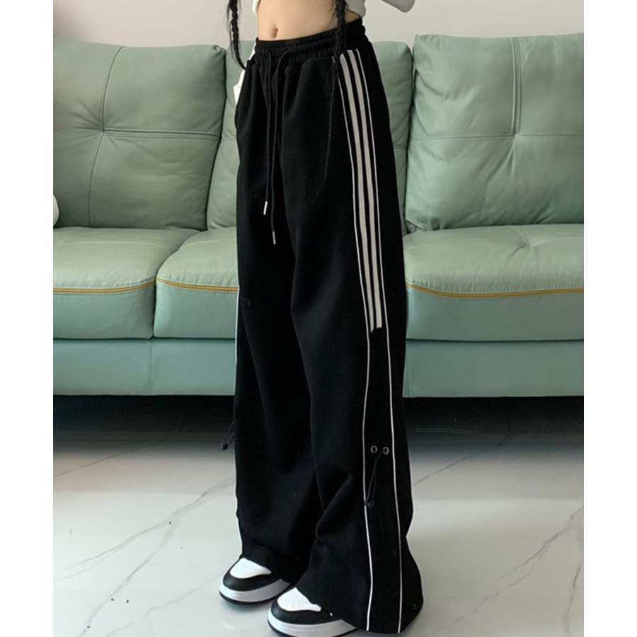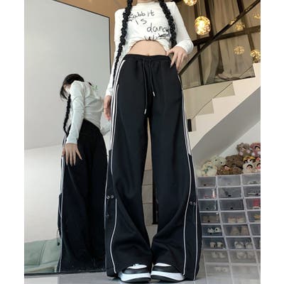 【HOOK】for girls サイドラインワイドスウェットパンツ
