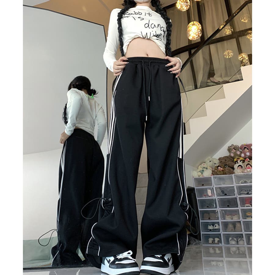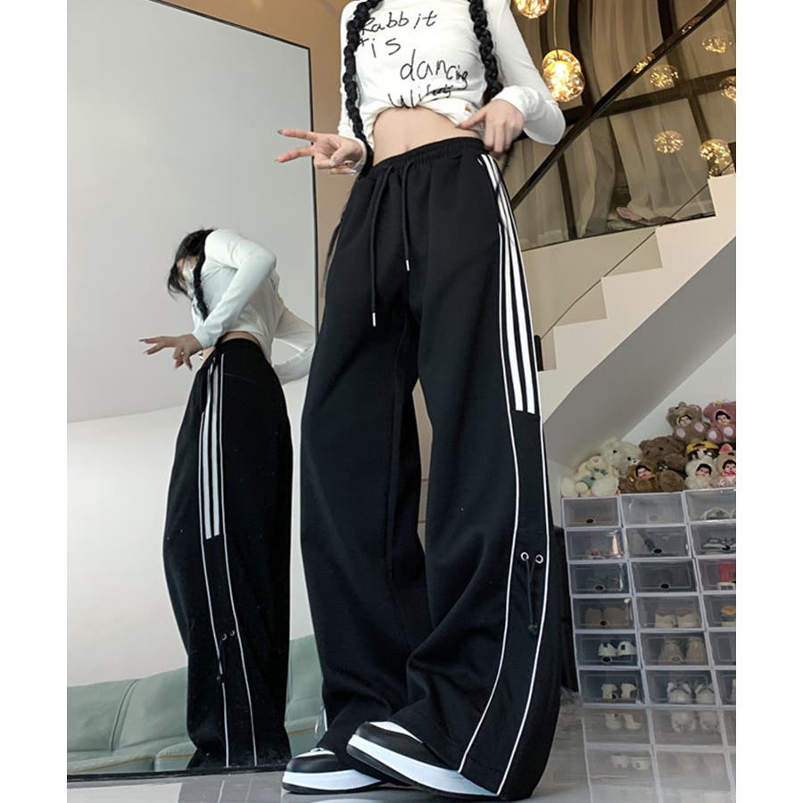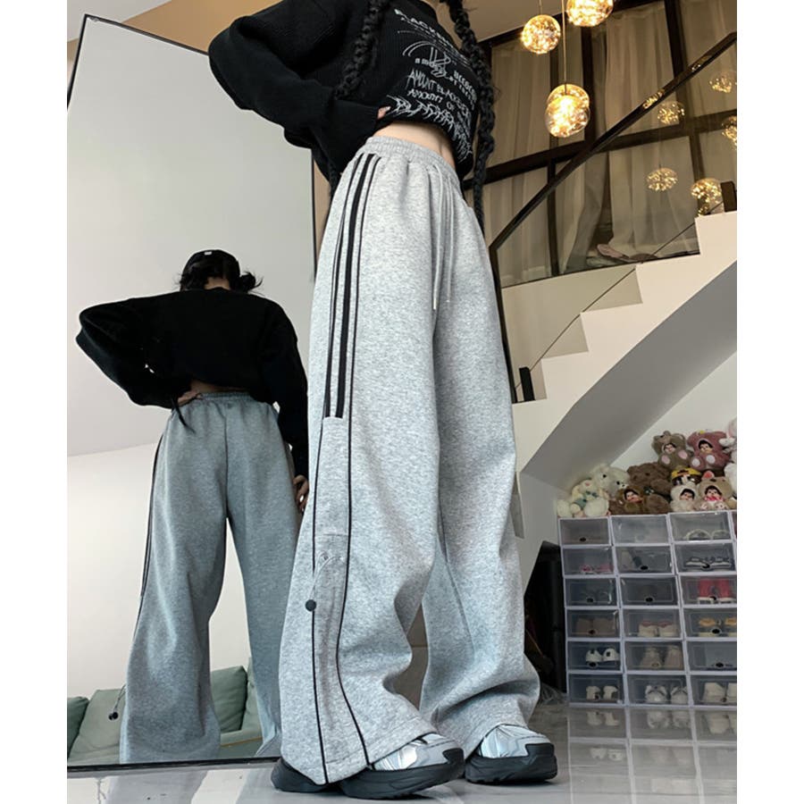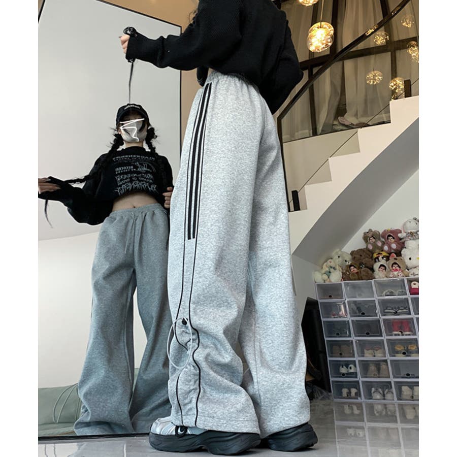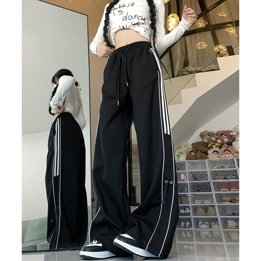 【HOOK】for girls サイドラインワイドスウェットパンツ