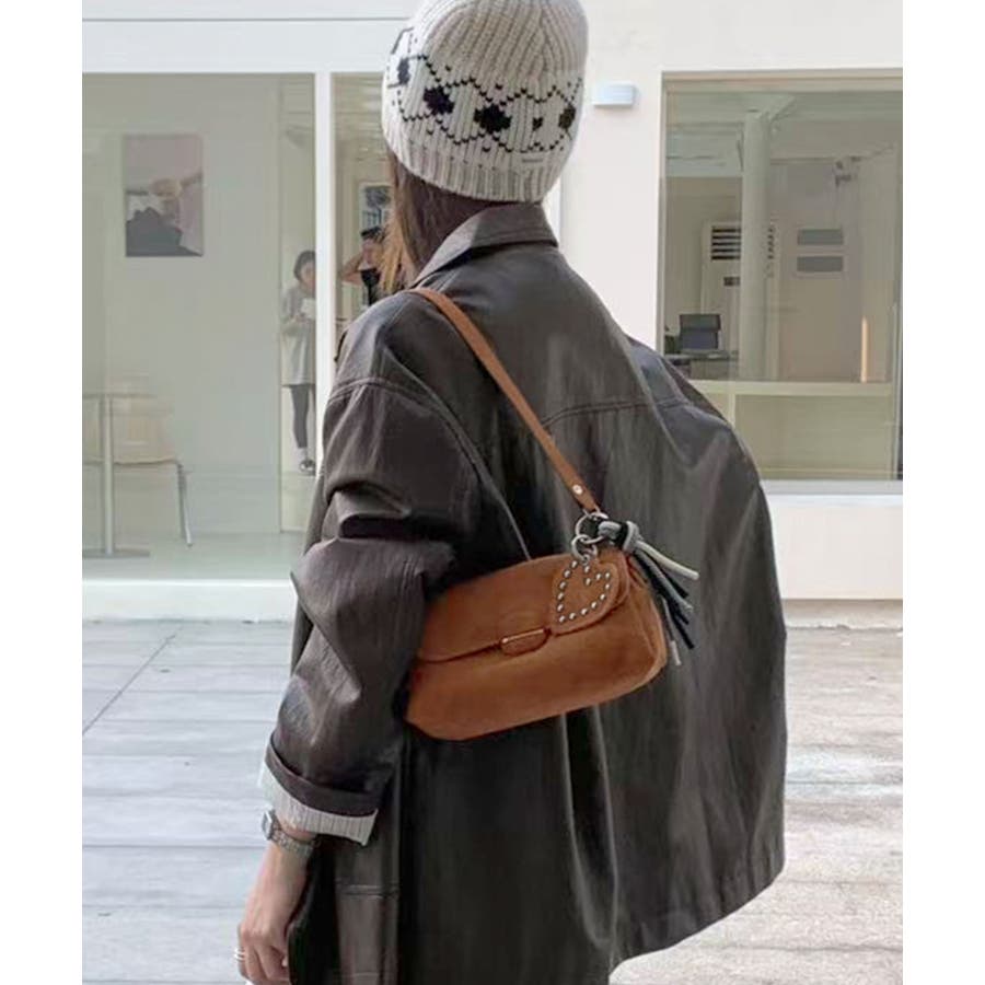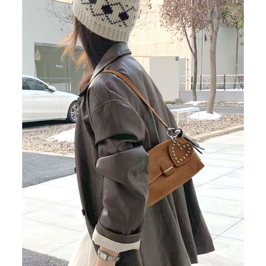 Y2K気分を盛り上げるハートチャームが目を惹く、スエードタッチミニショルダーバッグ。