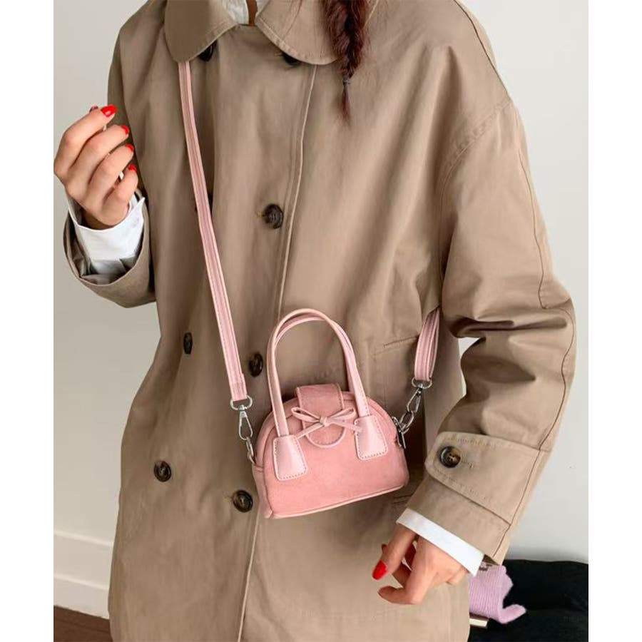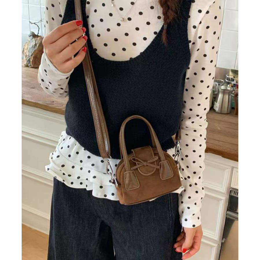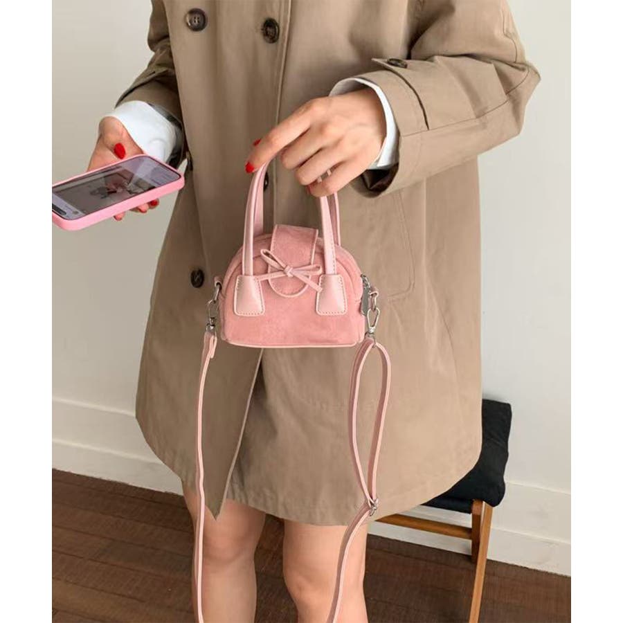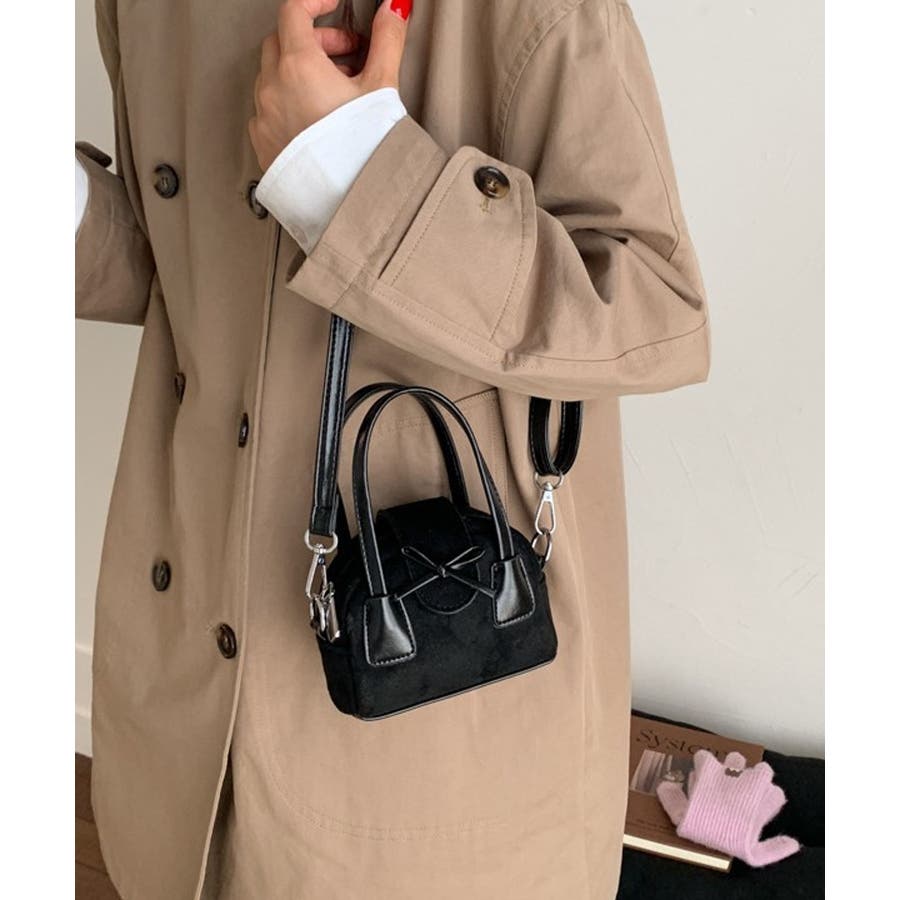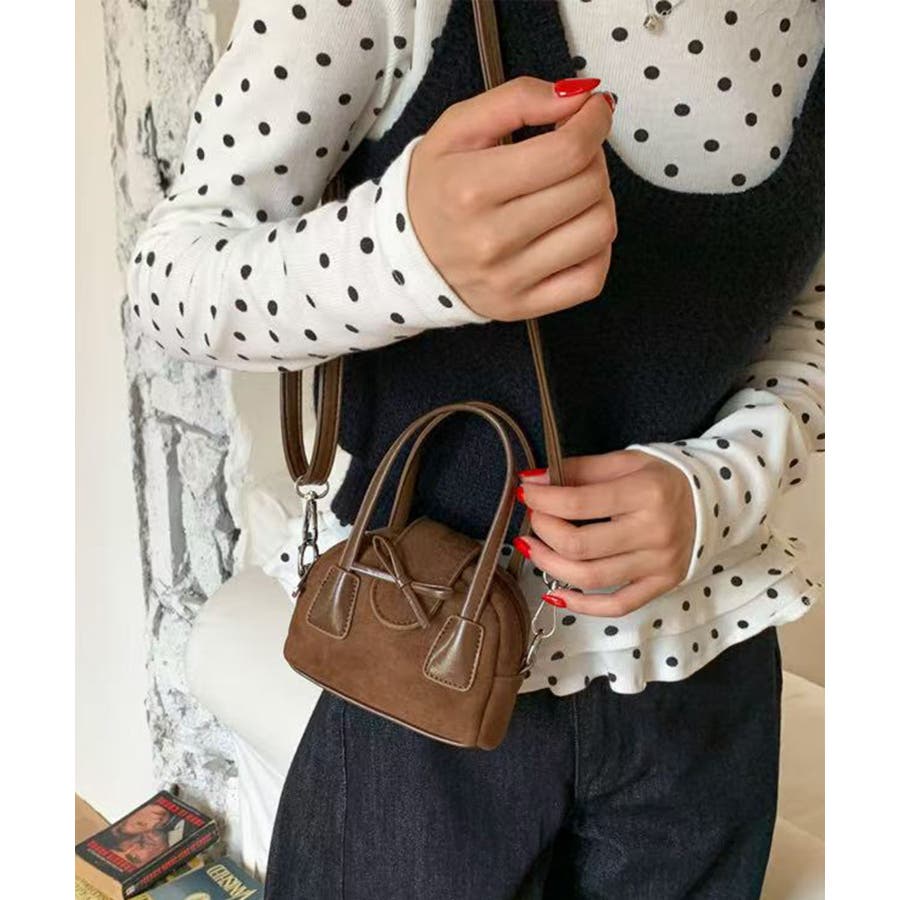 コロンとした丸みシルエットにフロントのリボンデザインを効かせ、甘さとカジュアルさのある使い勝手の良い一品です。
