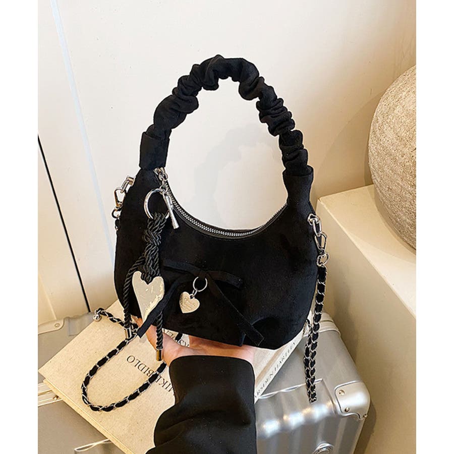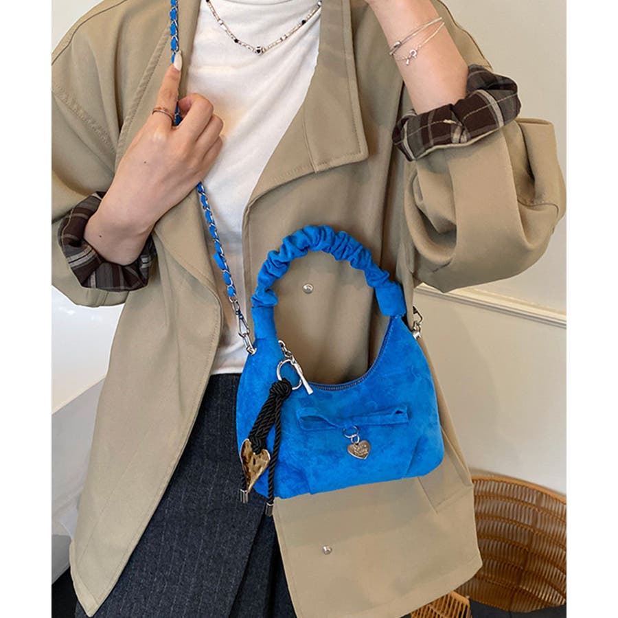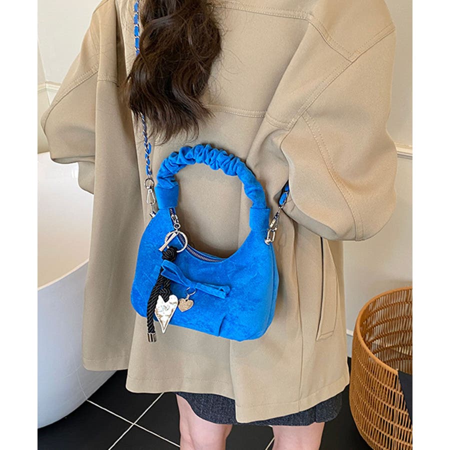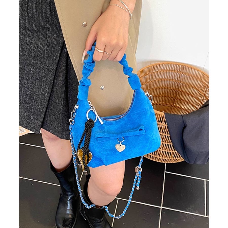 ふわっとした質感とギャザーハンドルが可愛く、付属のチェーンショルダーを付ければ気分に合わせてハンドバッグにもショルダーバッグにも変身♡