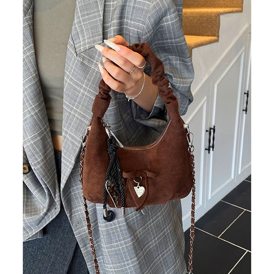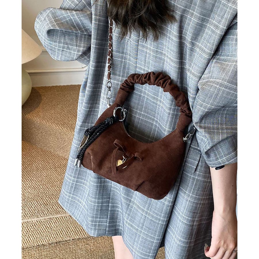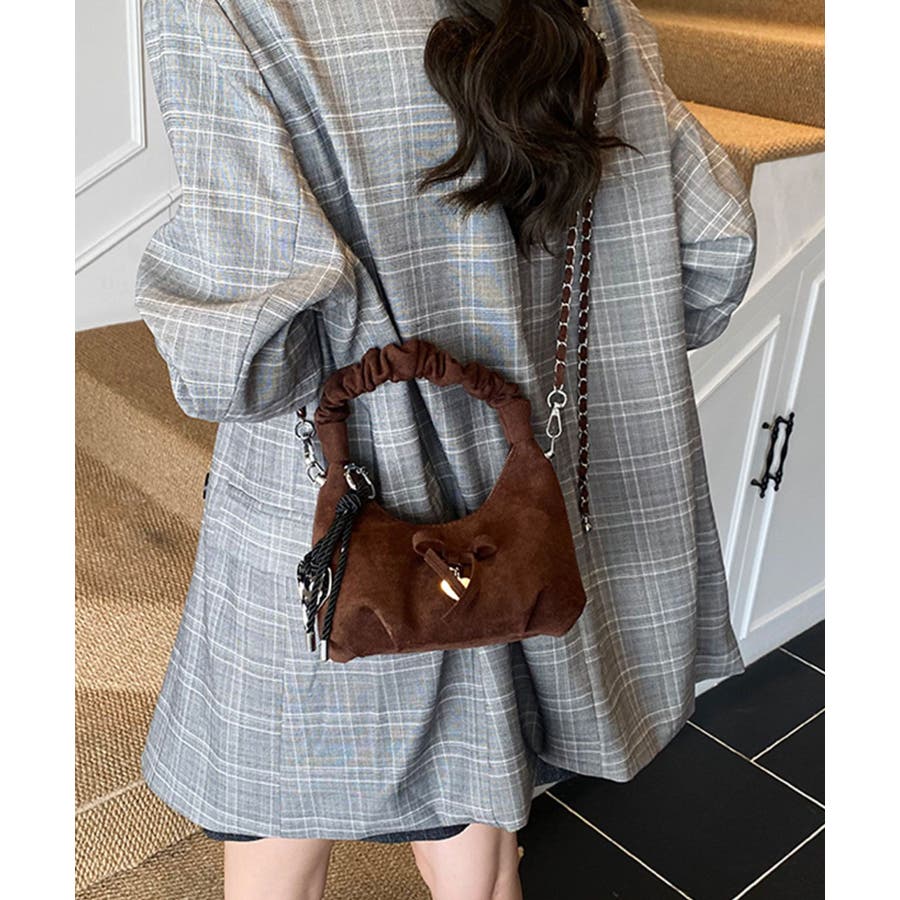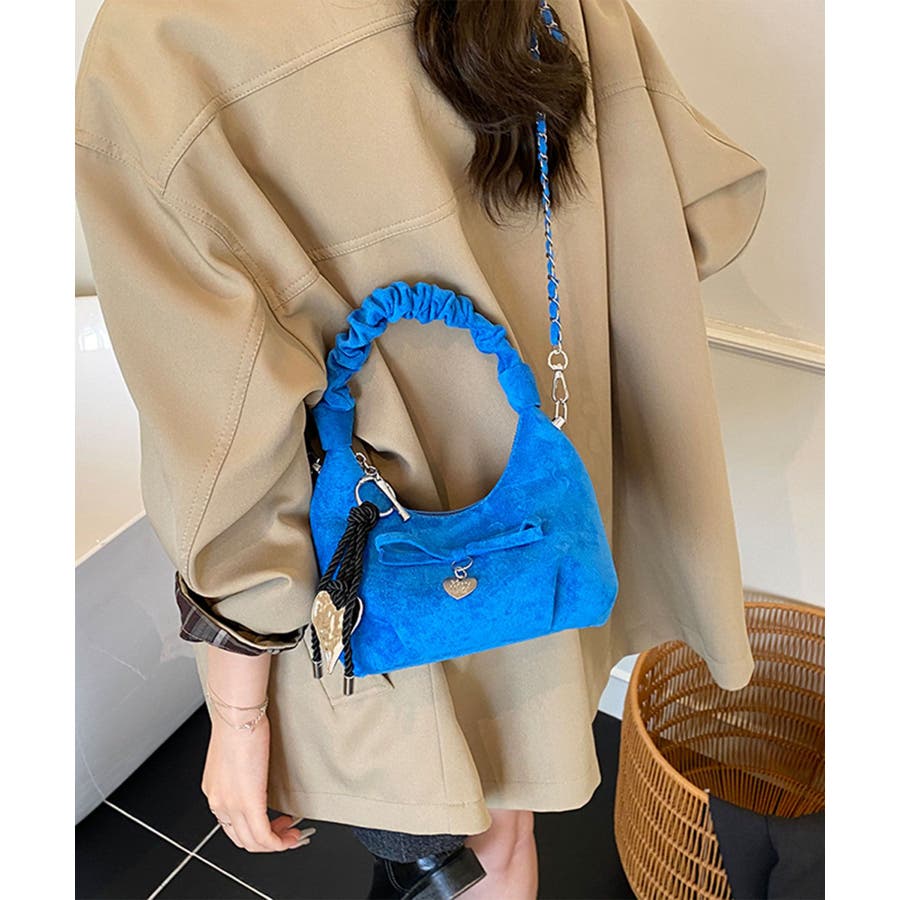 ふわっとした質感とギャザーハンドルが可愛く、付属のチェーンショルダーを付ければ気分に合わせてハンドバッグにもショルダーバッグにも変身♡