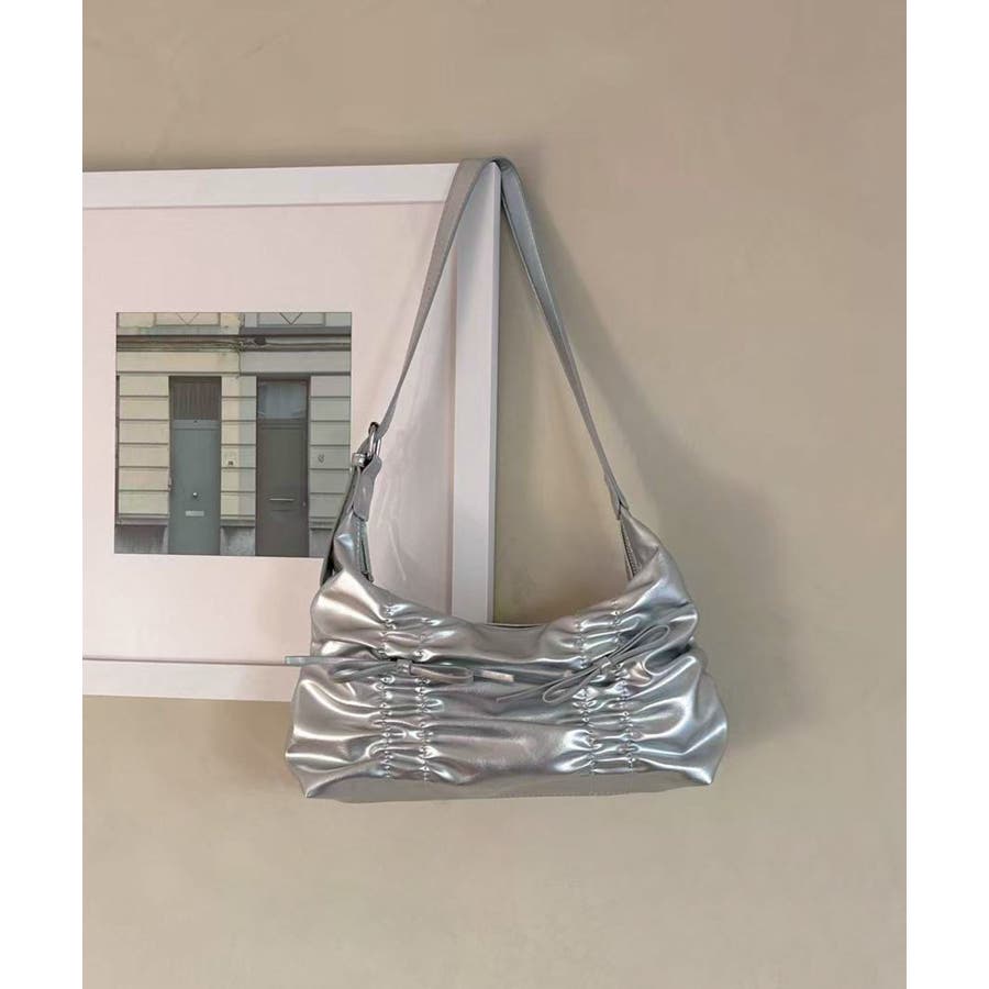 艶やかな光沢感が目を惹く、メタリックルックのショルダーバッグ。