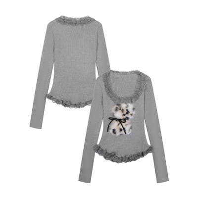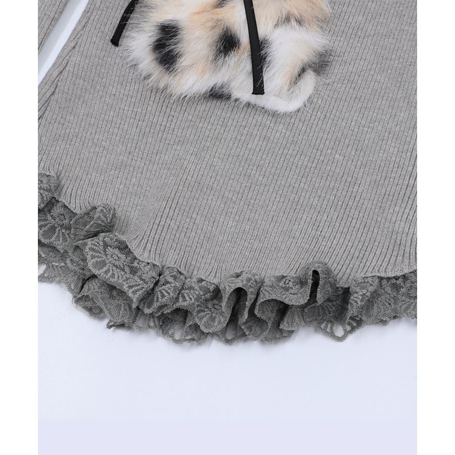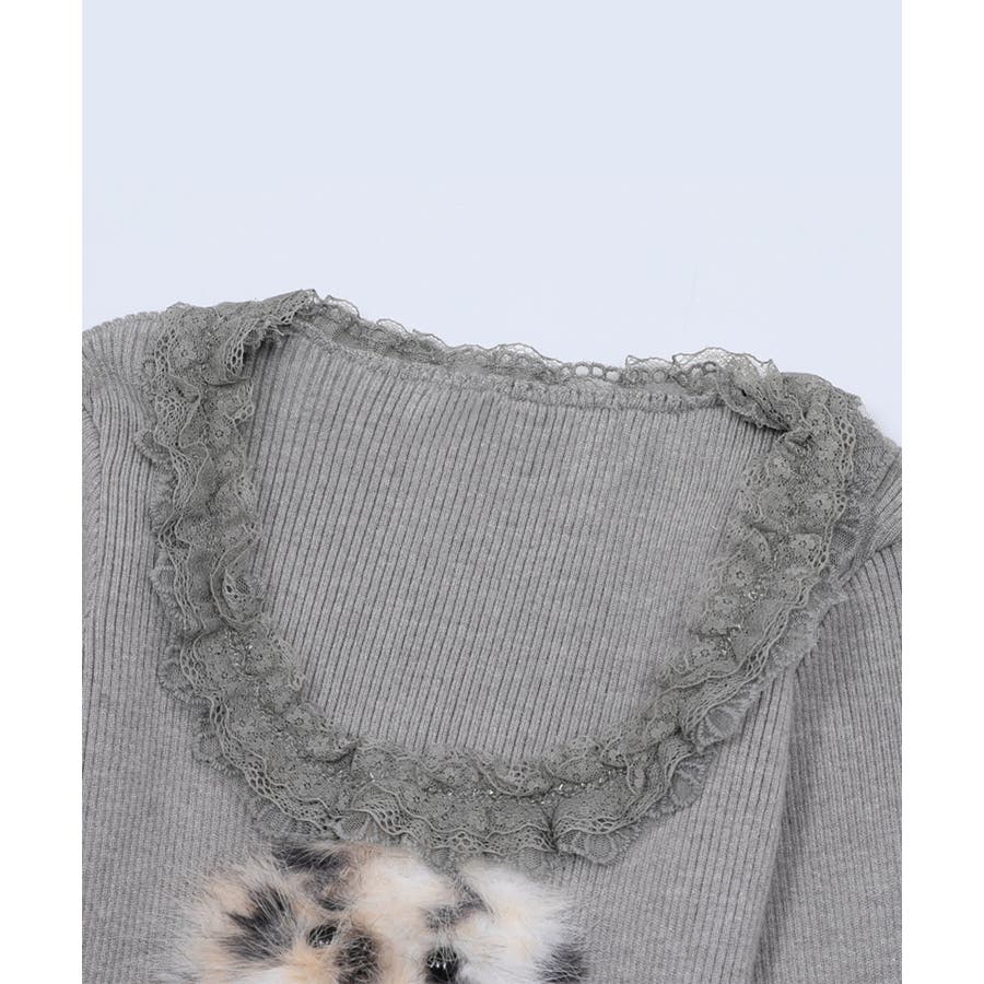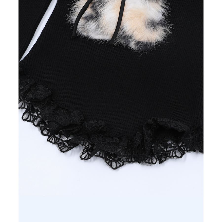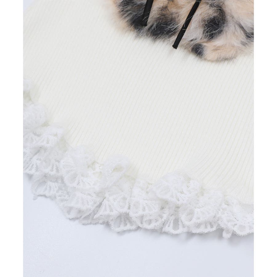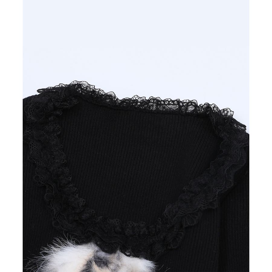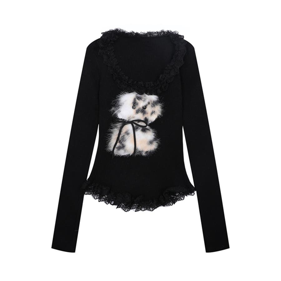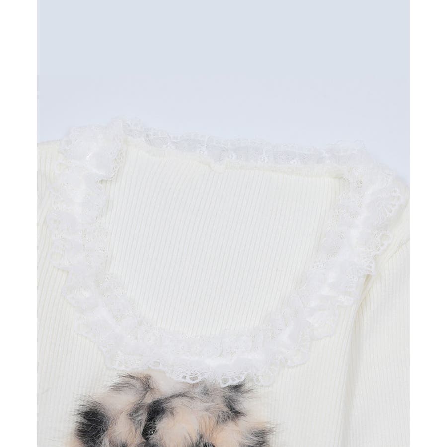 ■デザインフロントにあしらったふわふわのファーモチーフと、リボンデザインがポイントのトップス。襟元や裾にはフリルを施し、フェミニンムードたっぷりに仕上げました。体にフィットするシルエットで、女性らしいラインを引き立てる一枚。カジュアルにもガーリーにも合わせやすい、万能トップスです。■コーディネート・デニムパンツと合わせて、甘辛MIXなカジュアルスタイルに。・フレアスカートやチュールスカートと合わせれば、ガーリーコーデの主役に。・アウターのインナーとしてもアクセントになるデザインで、季節問わず活躍。