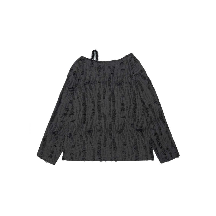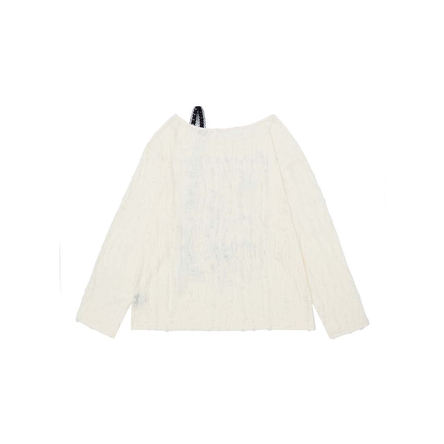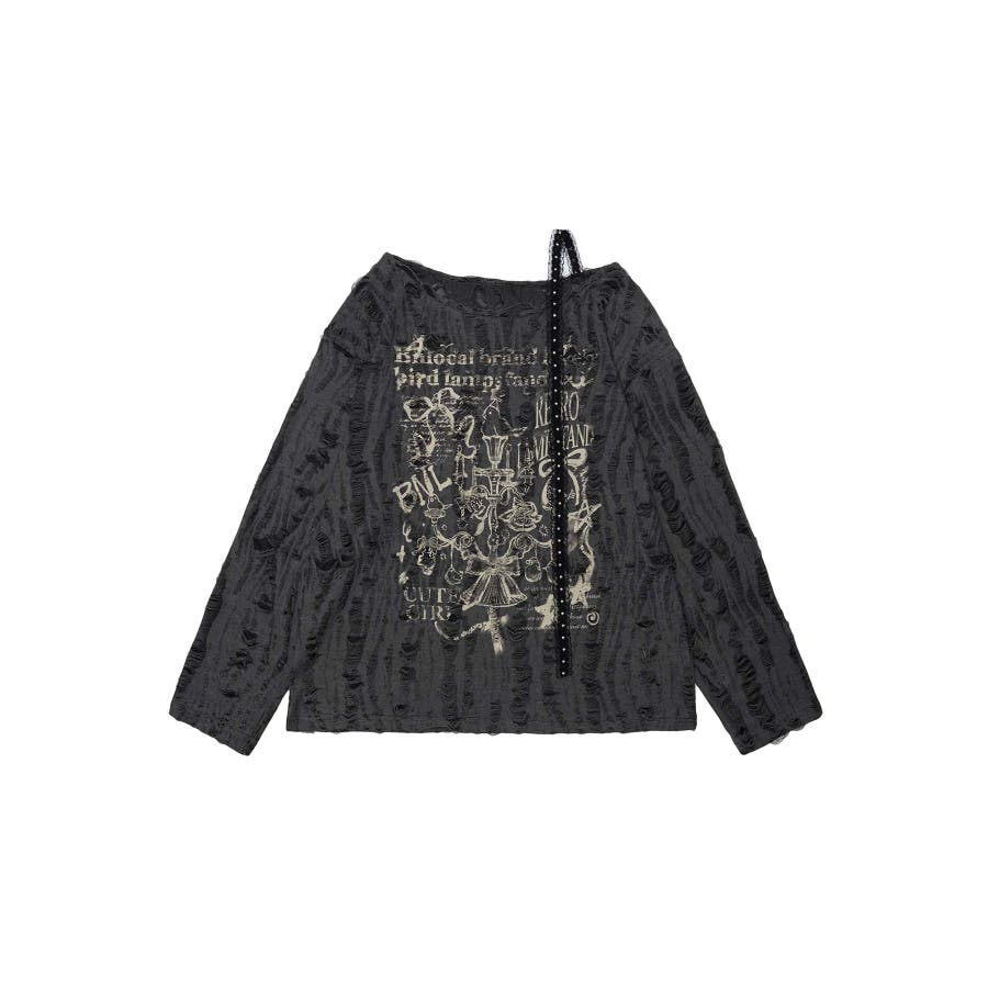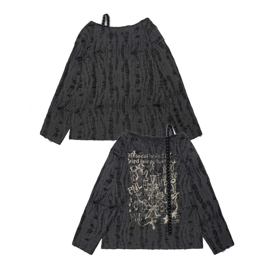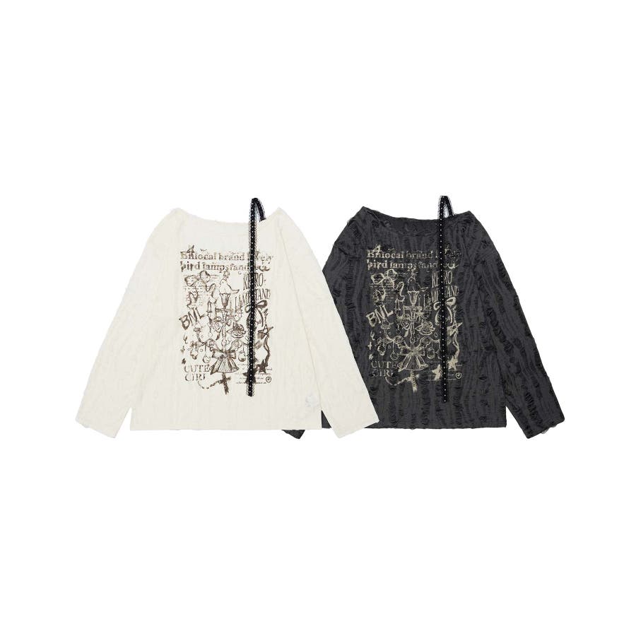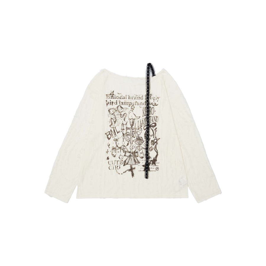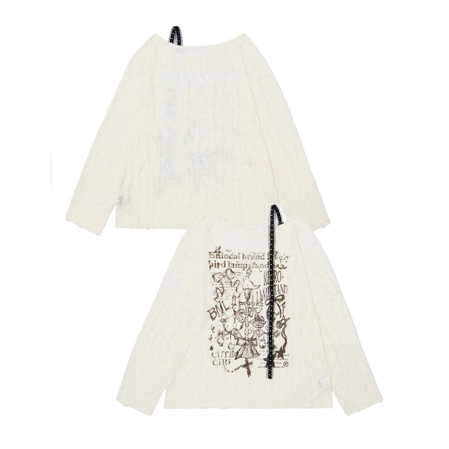 大胆なリボンプリントと肩出しデザインが特徴的な、大人っぽいカジュアルトップス。フロントに施されたビンテージ調のリボンプリントがポイント。オープンショルダーデザインで抜け感がありアクセントのスタッズリボンが際立ちます。全体に施されたダメージ加工がユーズドライクな雰囲気を加えています。 柔らかく伸縮性のあるコットン混紡素材を使用。肌触りが良く軽やかな着心地で、長時間の着用にも快適。シーズンを問わず活躍できる万能素材です。ベージュとダークグレーの2色展開。どちらも落ち着いたトーンで、リボンプリントが際立つ仕上がり。デニムパンツやカーゴパンツと合わせたカジュアルコーデがおすすめ。また、フレアスカートやプリーツスカートと合わせれば、フェミニンなコーディネートにもマッチ。足元はスニーカーやショートブーツで、全体のバランスを整えると◎