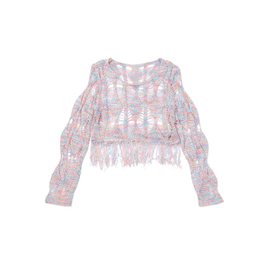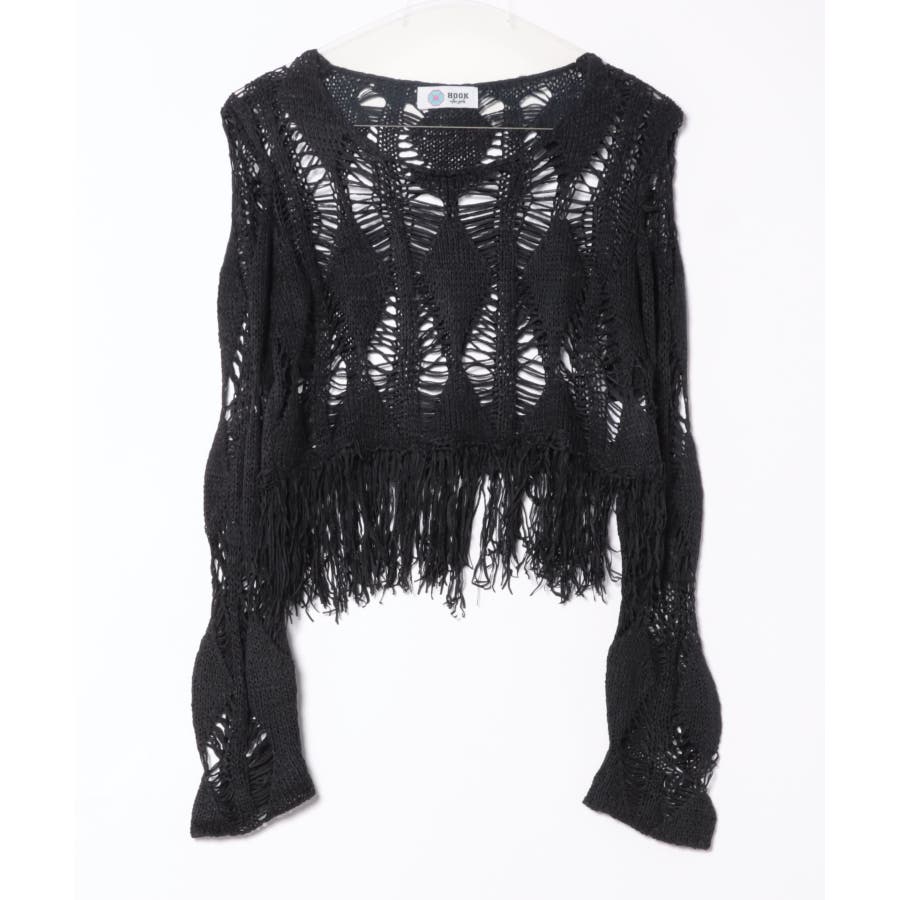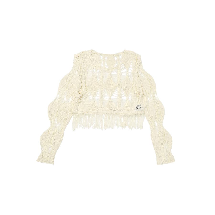 【HOOK】for girls 透かし編みフリンジサマーニット