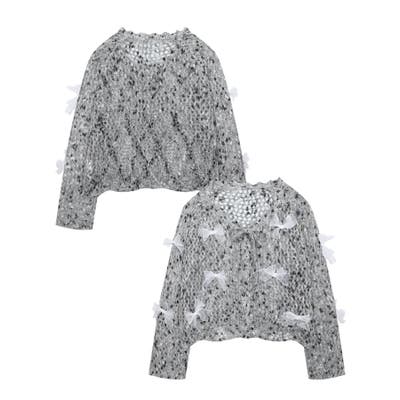 【HOOK】for girls シフォンリボンたっぷり透かしモヘアカーディガン