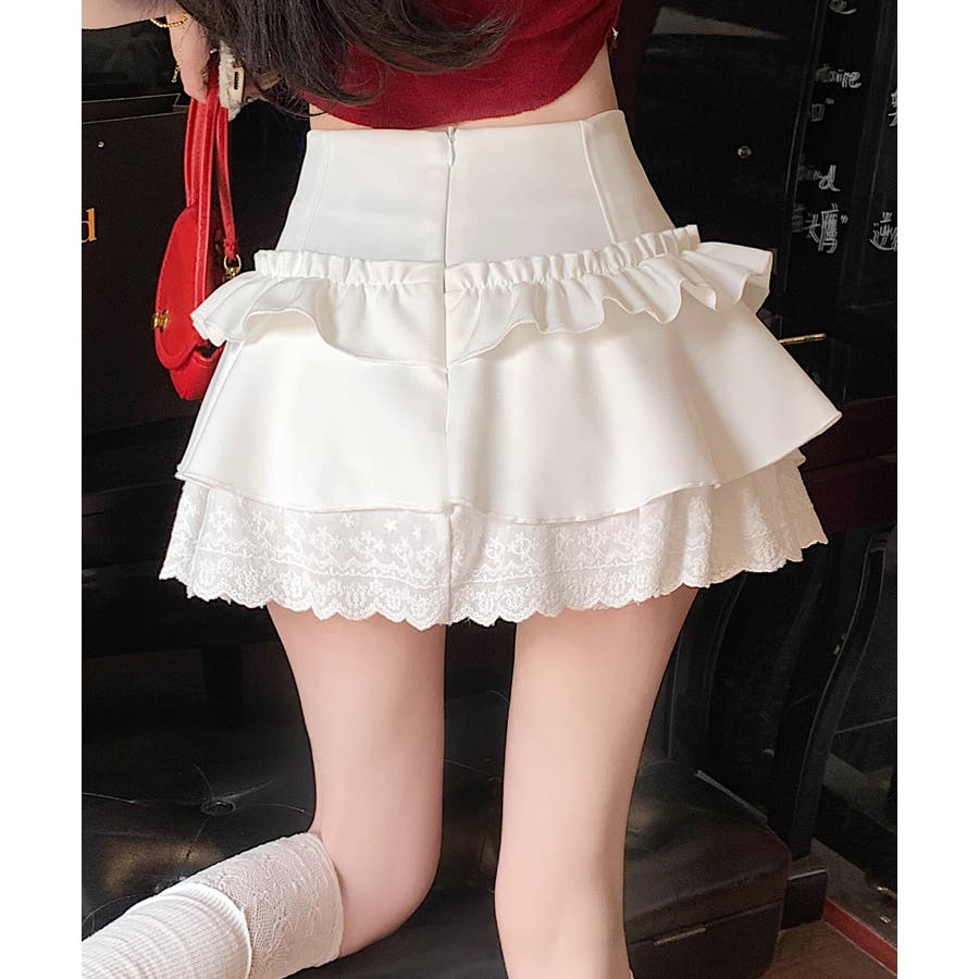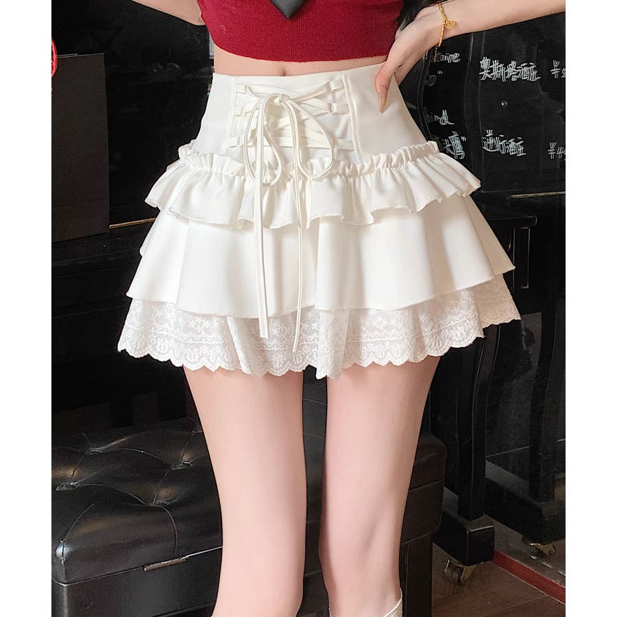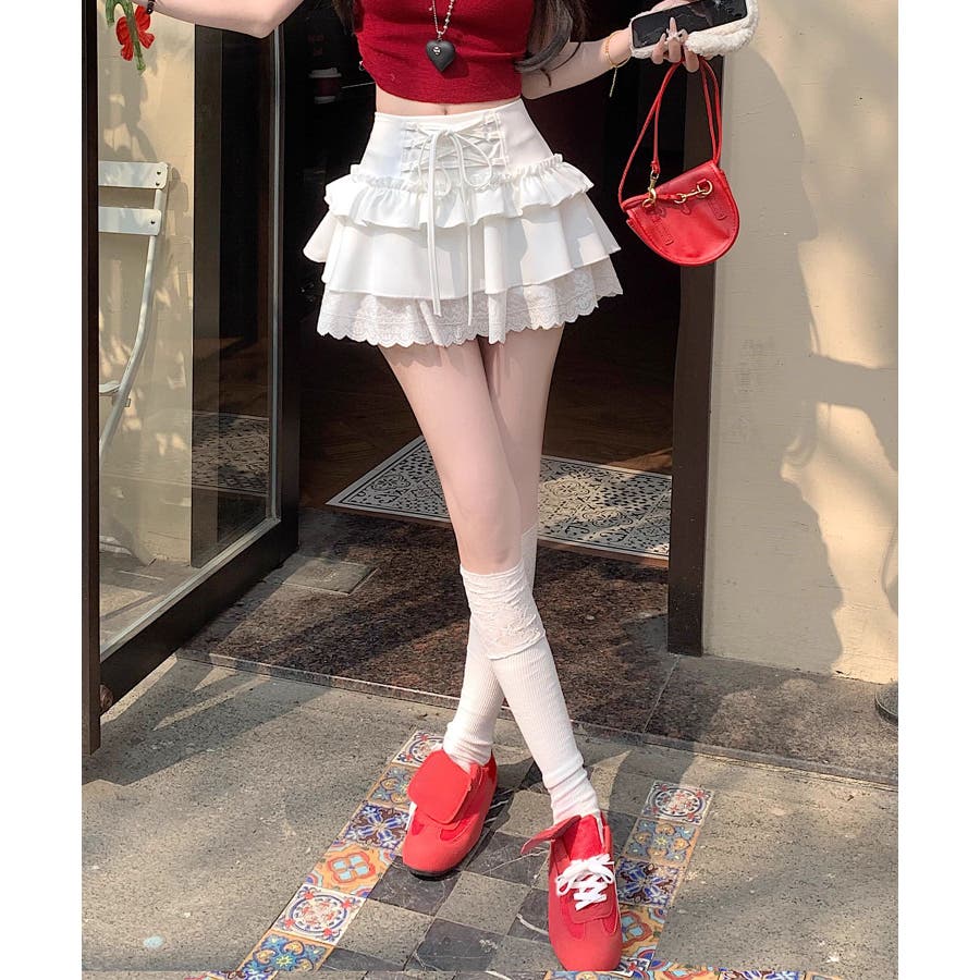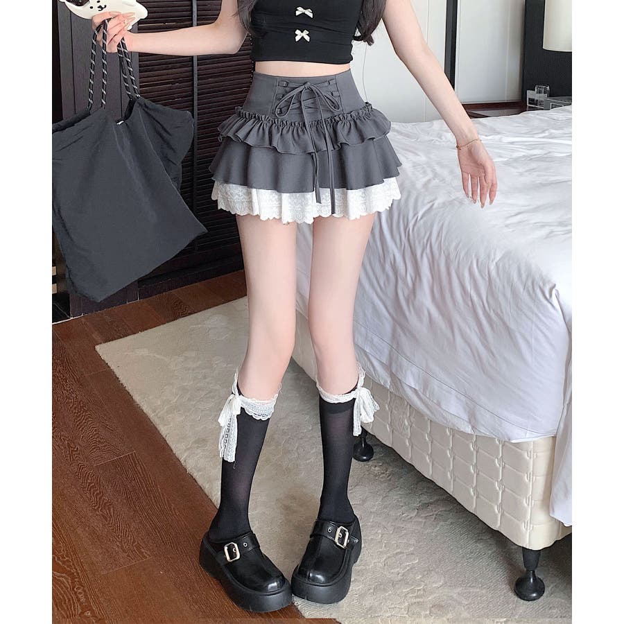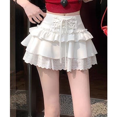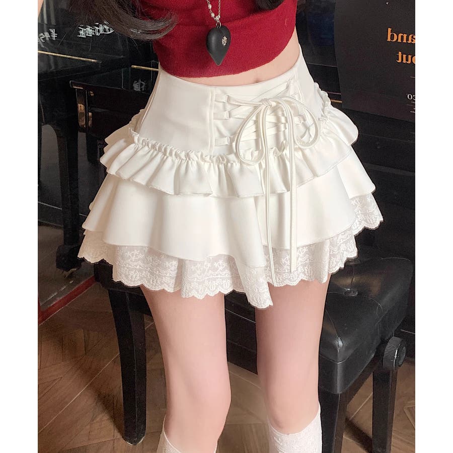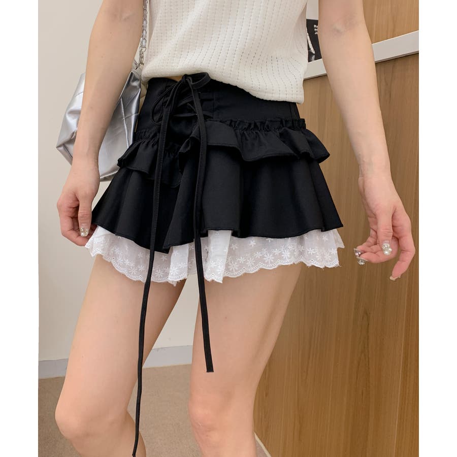 ミニ丈ながらもフリルとレースで軽やかな印象に仕上げました。