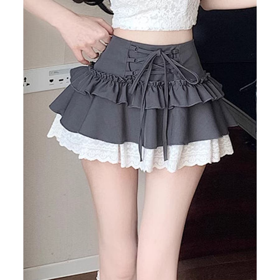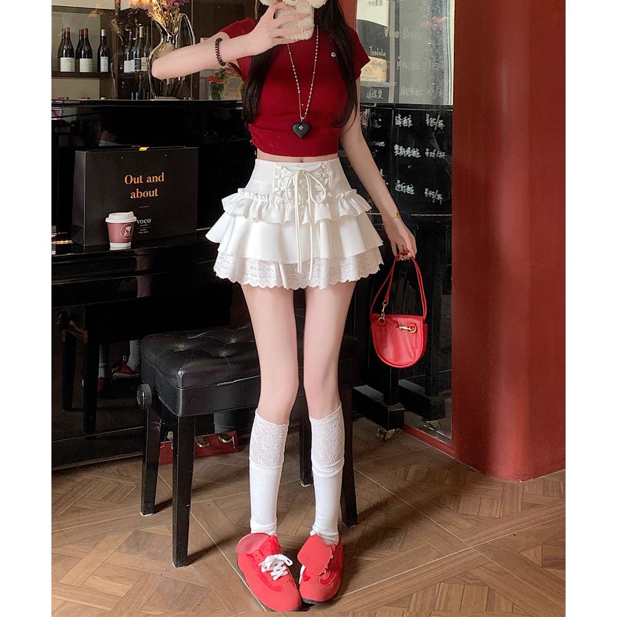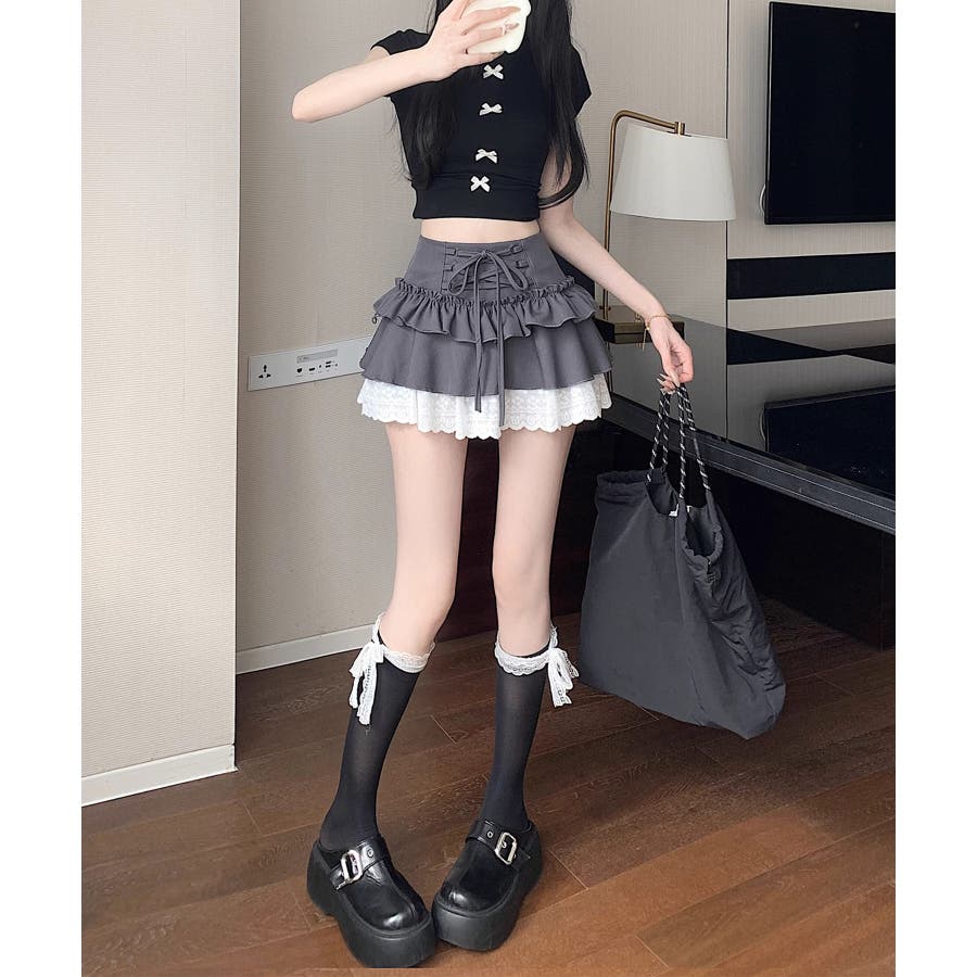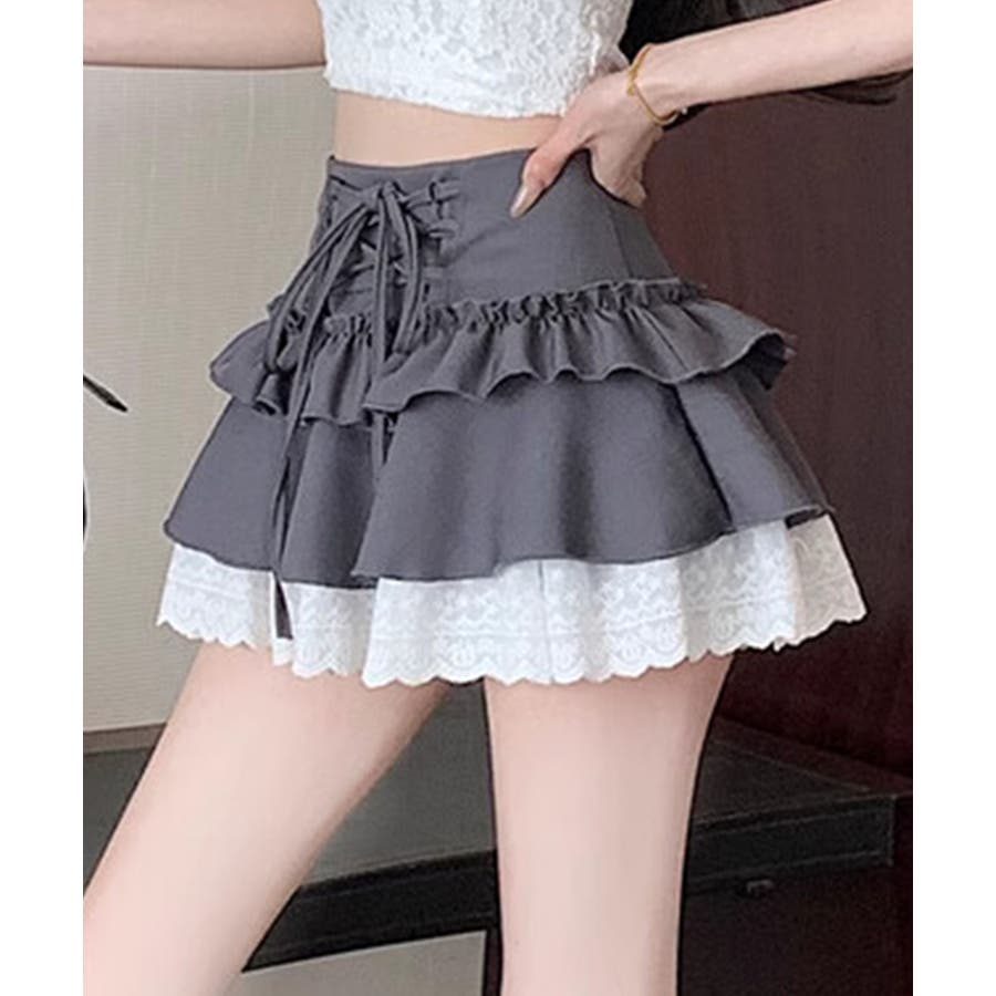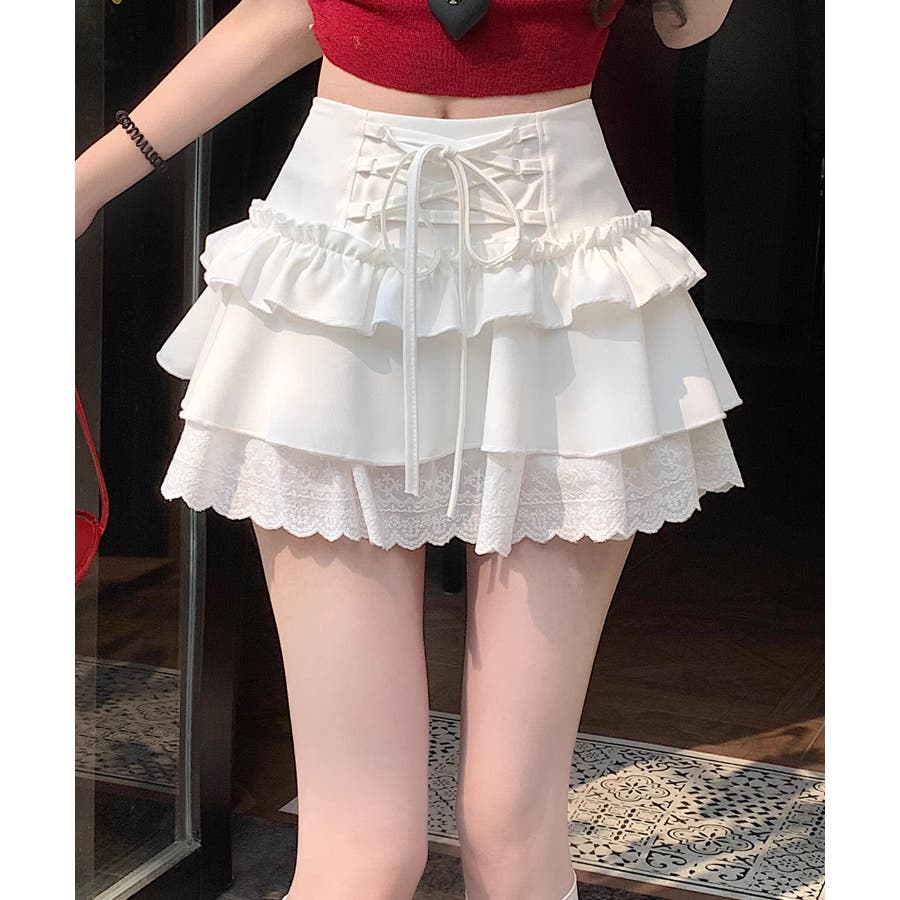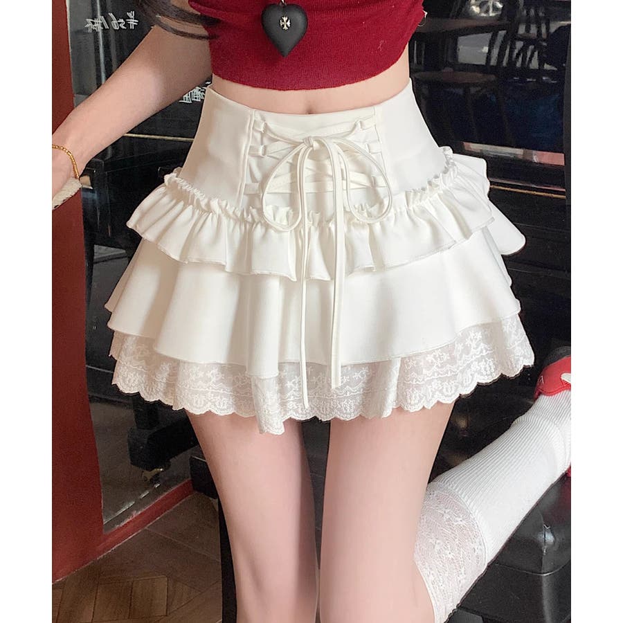 ミニ丈ながらもフリルとレースで軽やかな印象に仕上げました。