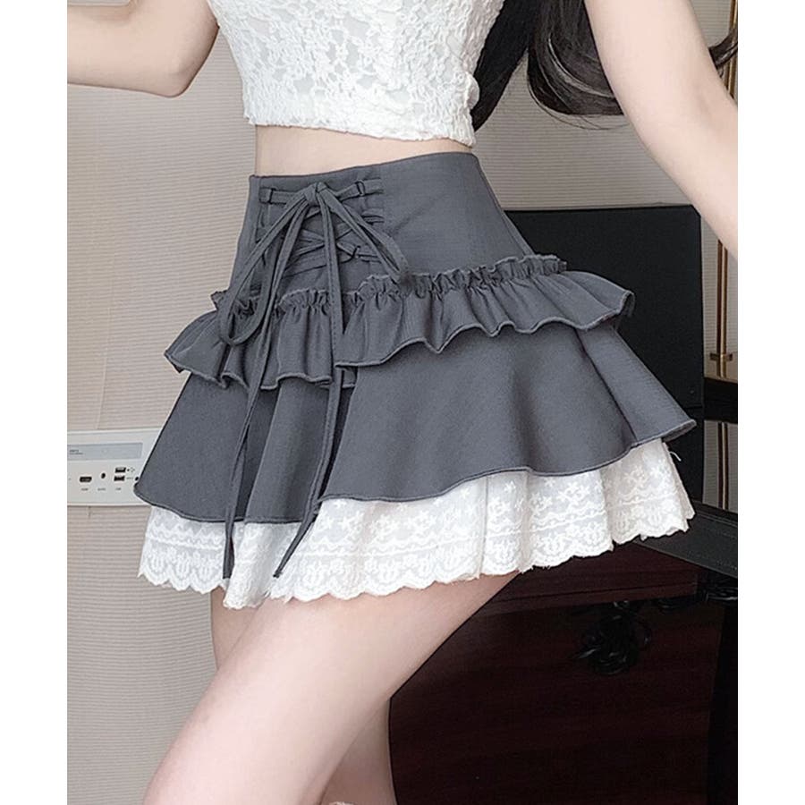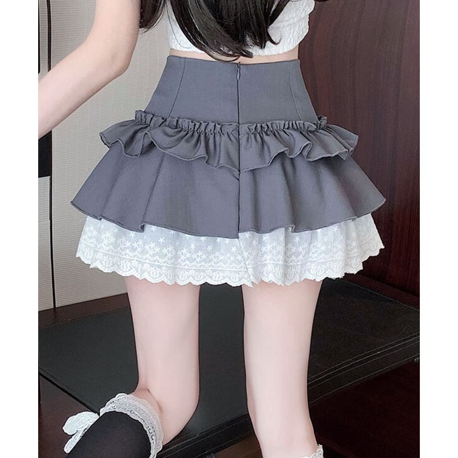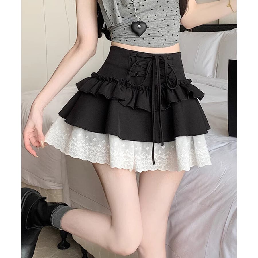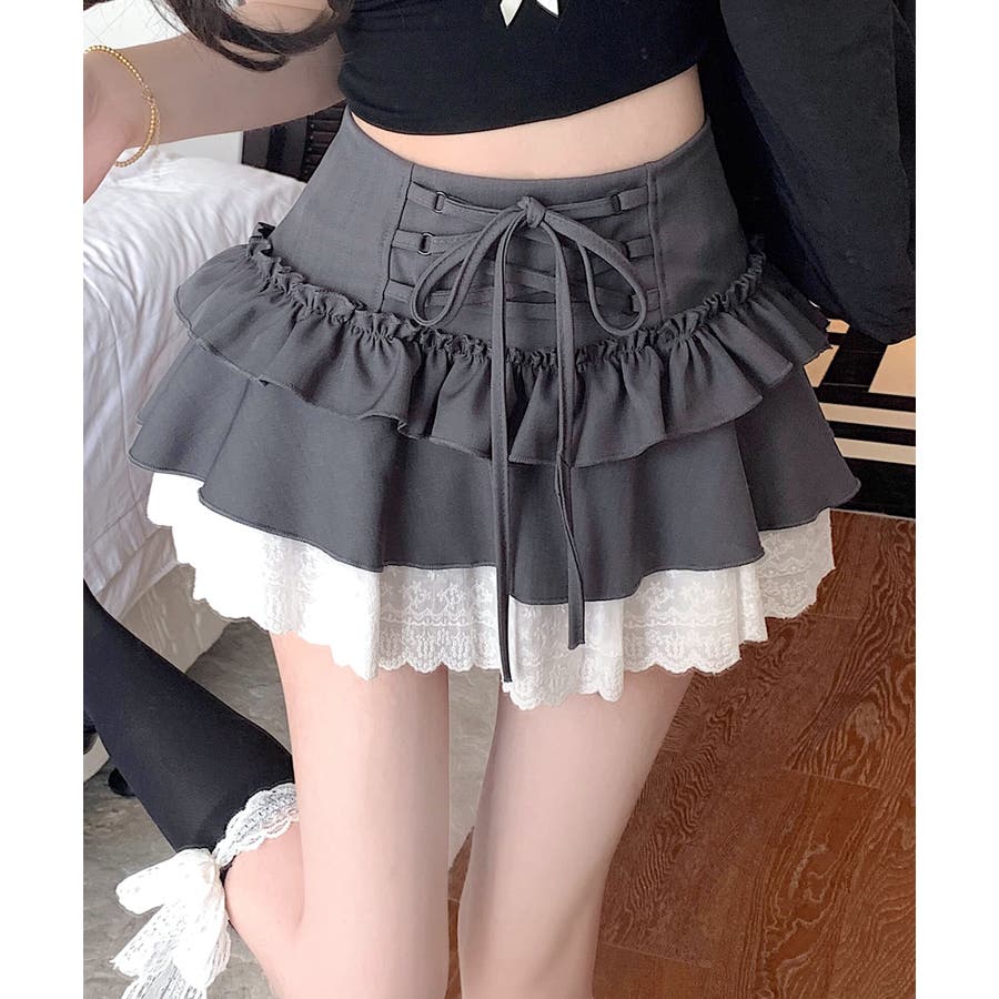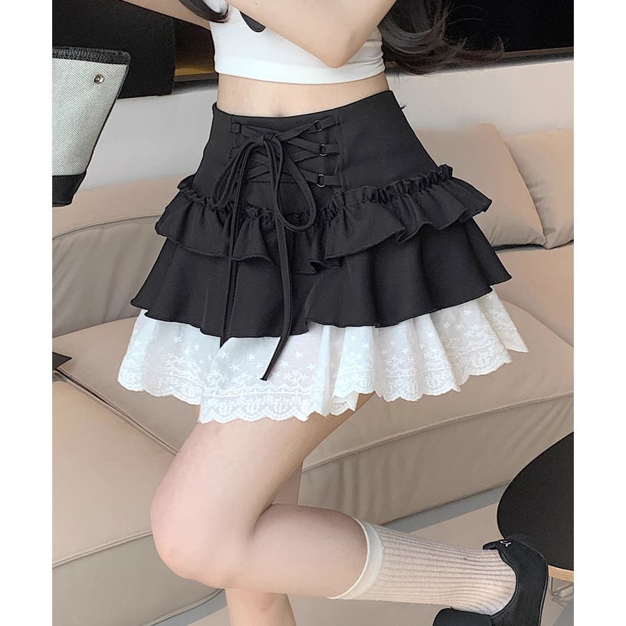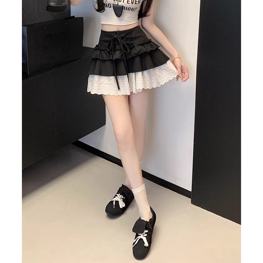 【HOOK】for girls レース切替フリルティアードミニスカート