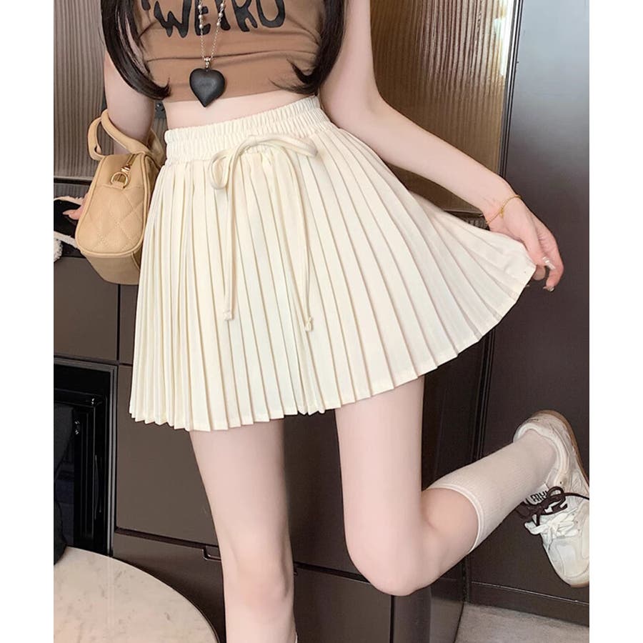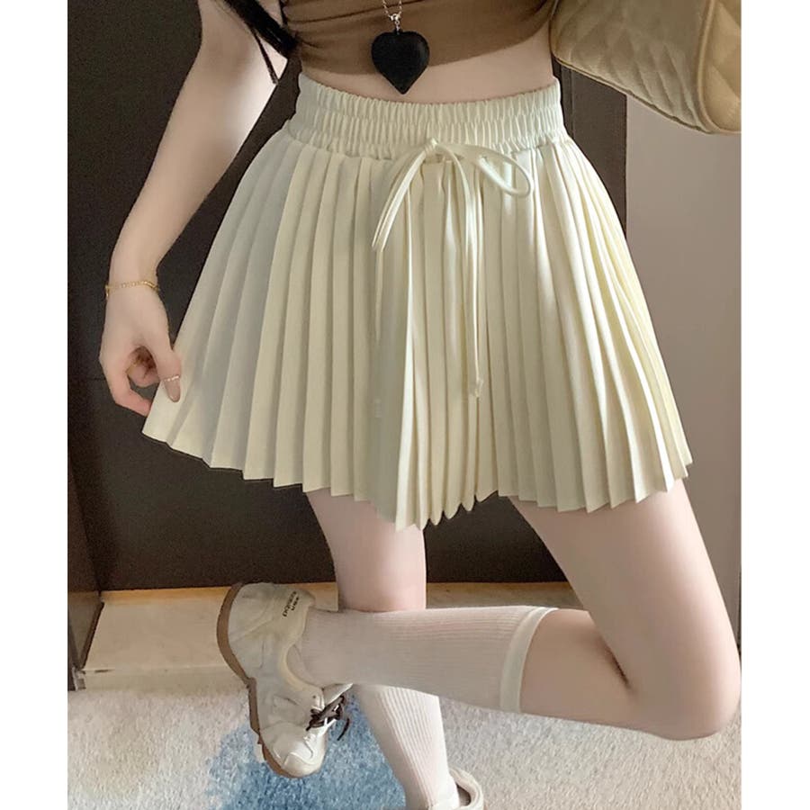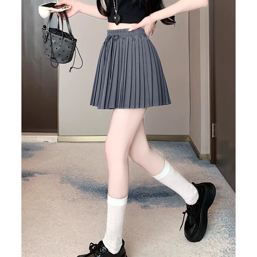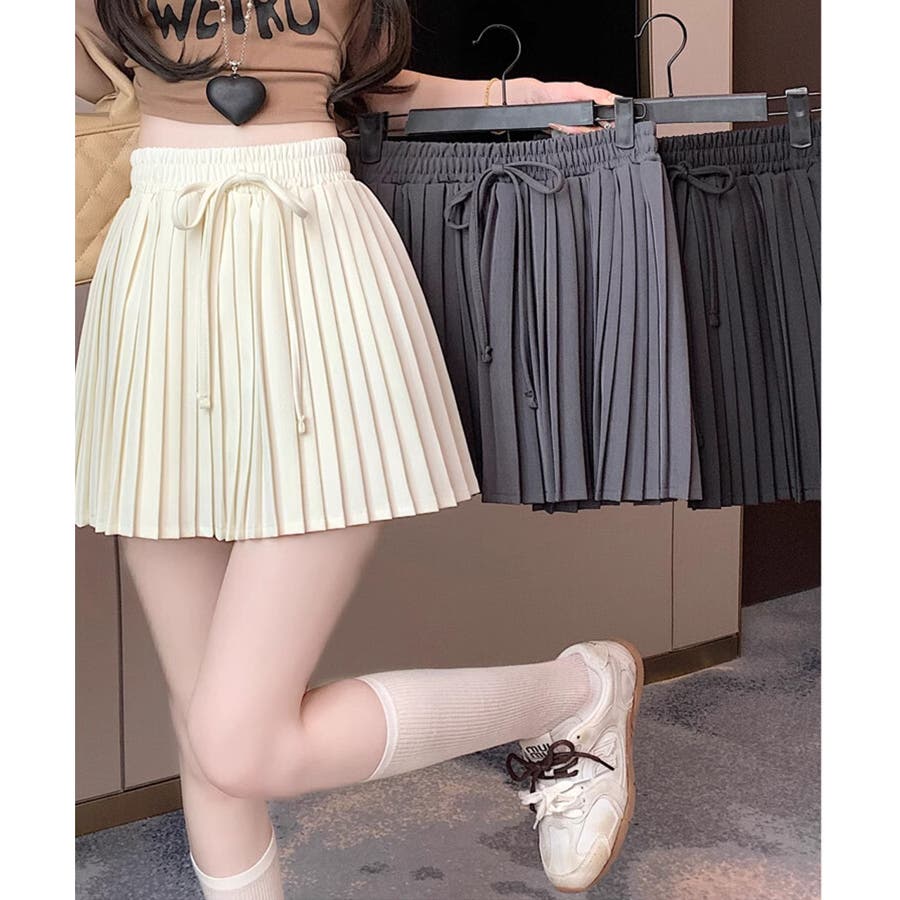 ■デザイントレンド感溢れるプリーツデザインのミニスカート。ウエスト部分にはさりげないリボンデザインをプラスし、カジュアルさの中にもガーリーなアクセントをプラス。程よいフレアシルエットで脚をすっきり見せてくれる嬉しいポイントも。デイリーコーデはもちろん、お出かけスタイルにも幅広く活躍します。■コーディネート・Tシャツやスウェットと合わせて、カジュアルガーリーなスタイルに。・ブラウスやニットと合わせれば、フェミニンな印象に。・スニーカーやローファーと合わせて、トレンド感のあるスクール風コーデにもおすすめ。