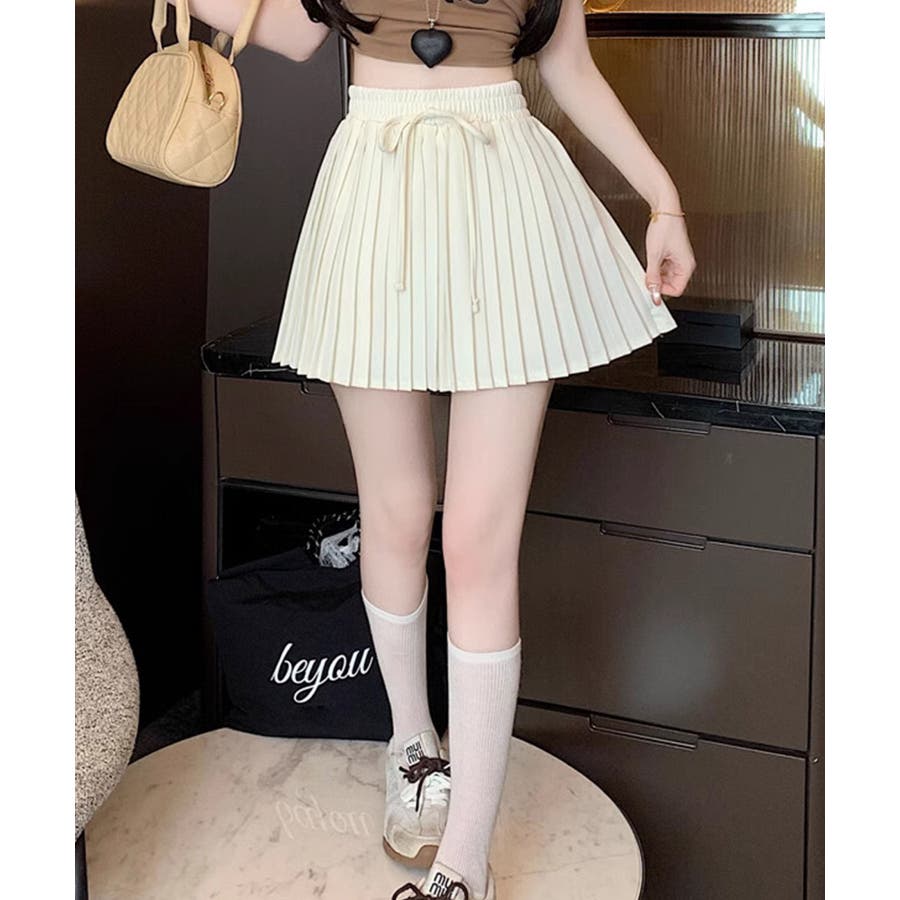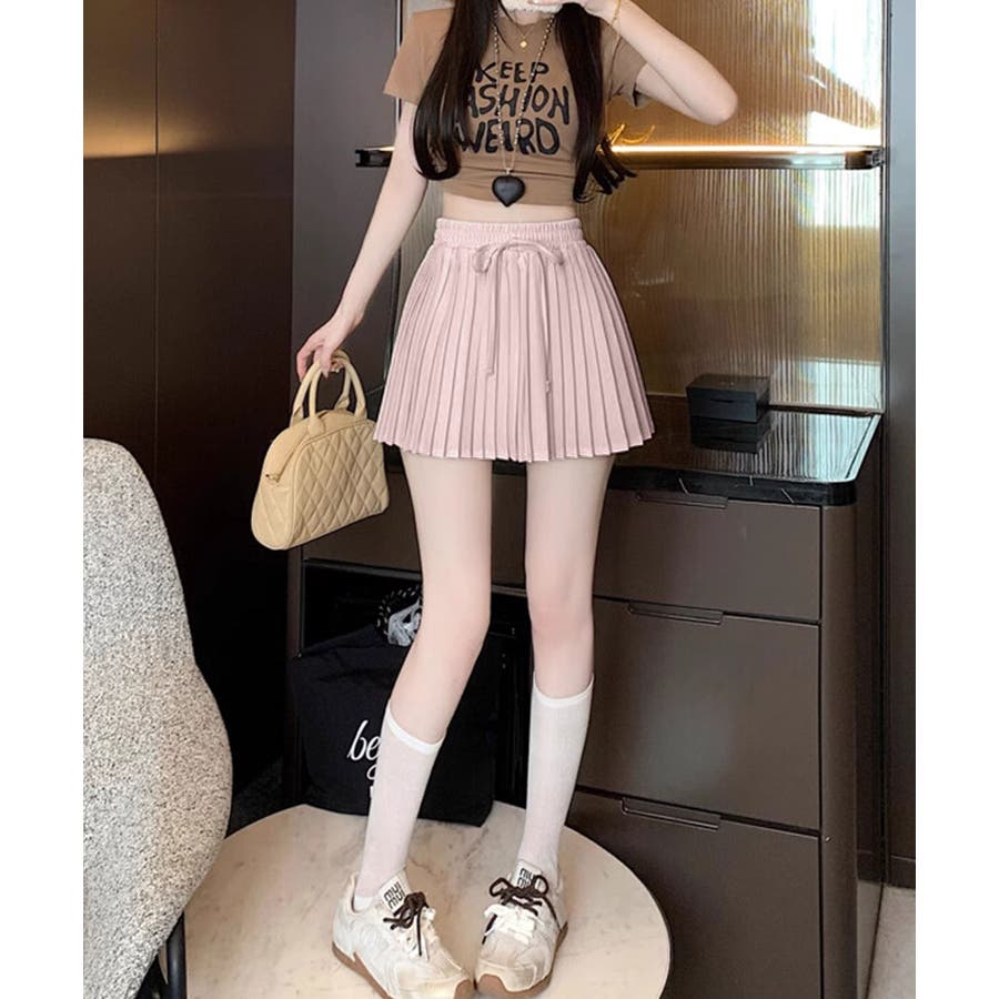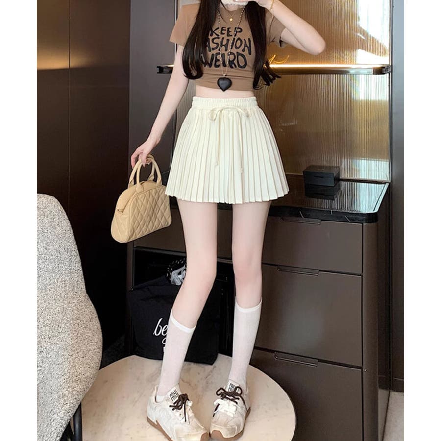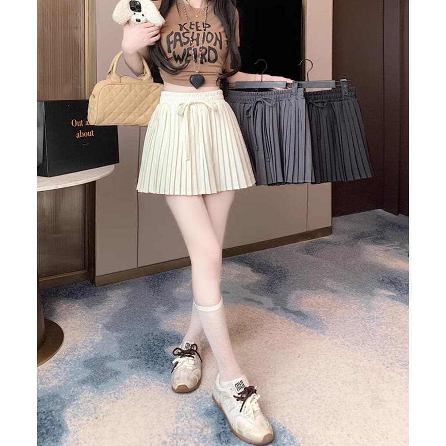 ■デザイントレンド感溢れるプリーツデザインのミニスカート。ウエスト部分にはさりげないリボンデザインをプラスし、カジュアルさの中にもガーリーなアクセントをプラス。程よいフレアシルエットで脚をすっきり見せてくれる嬉しいポイントも。デイリーコーデはもちろん、お出かけスタイルにも幅広く活躍します。■コーディネート・Tシャツやスウェットと合わせて、カジュアルガーリーなスタイルに。・ブラウスやニットと合わせれば、フェミニンな印象に。・スニーカーやローファーと合わせて、トレンド感のあるスクール風コーデにもおすすめ。