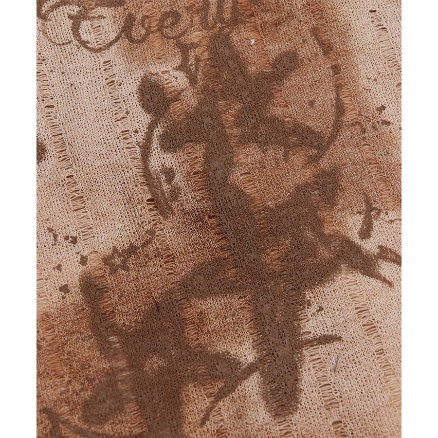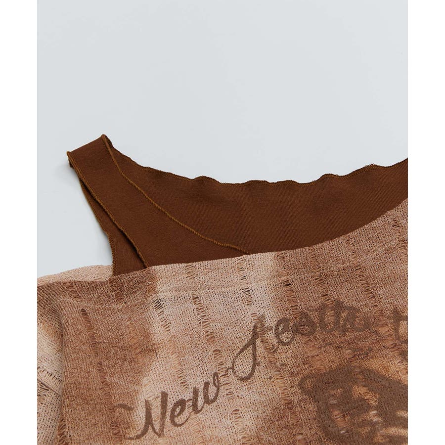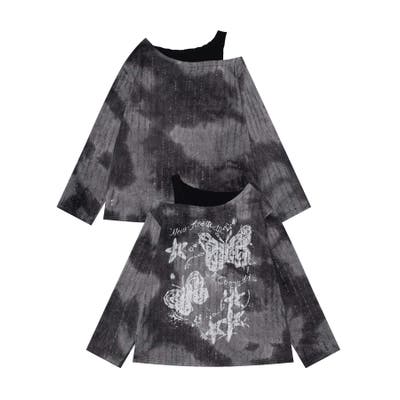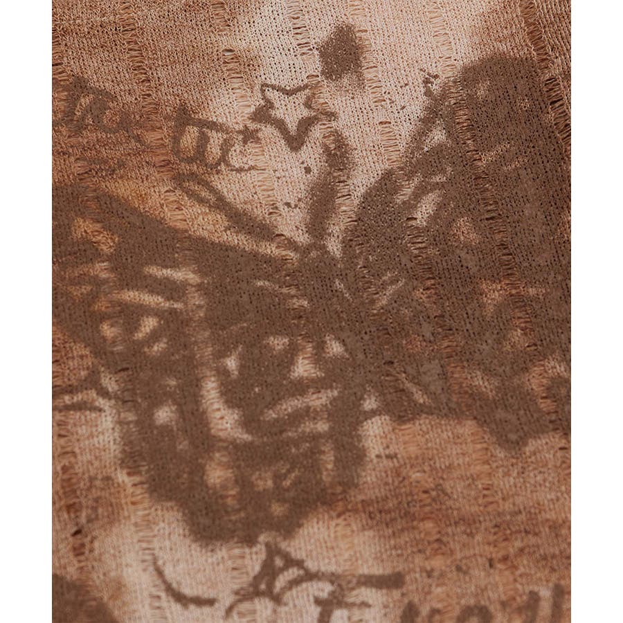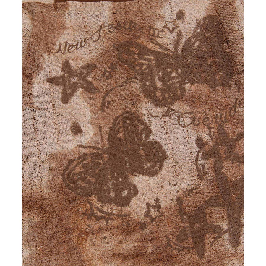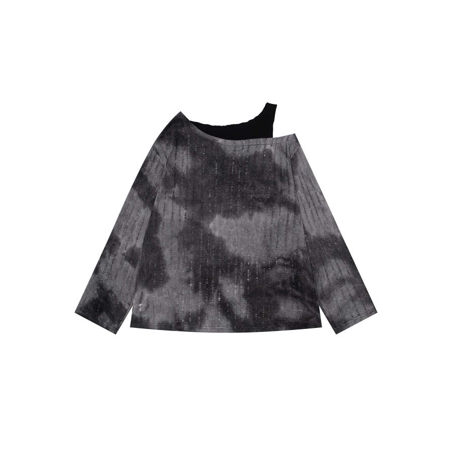 ヴィンテージ感漂うタイダイ柄と肩出しデザインが目を引く個性的なトップス。タイダイプリントの味わい深い模様はリラックス感があり。片肩を大胆に開けたレイヤード風のアシンメトリーなデザインがモード感をプラス。フロントにあしらわれた蝶やレタリングのプリントがガーリーな雰囲気を演出します。軽やかな着心地で、シーズンを問わず活躍するアイテムです。適度な厚みがあり、レイヤードスタイルにも対応可能。ヴィンテージブラウンとモノトーンブラックの2色展開。それぞれタイダイ柄のニュアンスが異なり、個性的なコーディネートが楽しめます。ワイドパンツやデニムと合わせてラフに着こなしたり、プリーツスカートやタイトスカートで女性らしさを引き立てたスタイルもおすすめ。インナーにタートルネックを合わせると、季節感を加えた着こなしが完成します。足元にはブーツやスニーカーをチョイスしてアクセントをプラス。