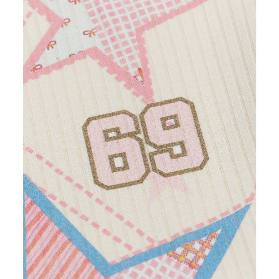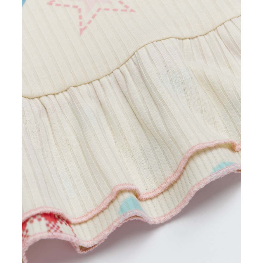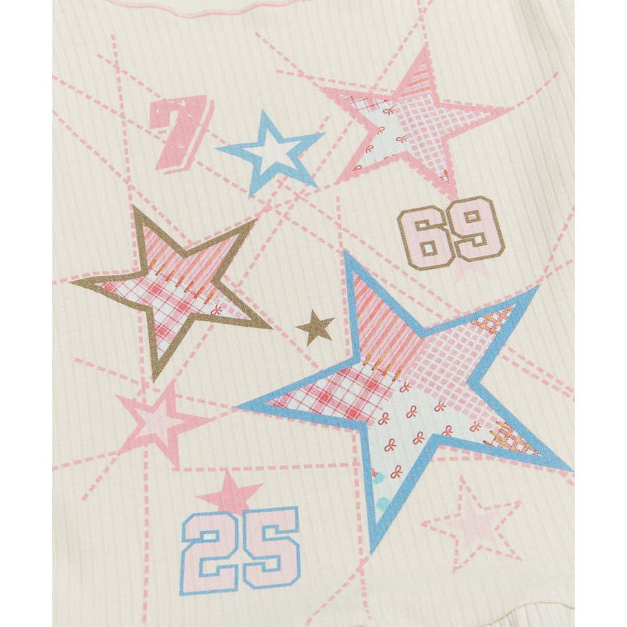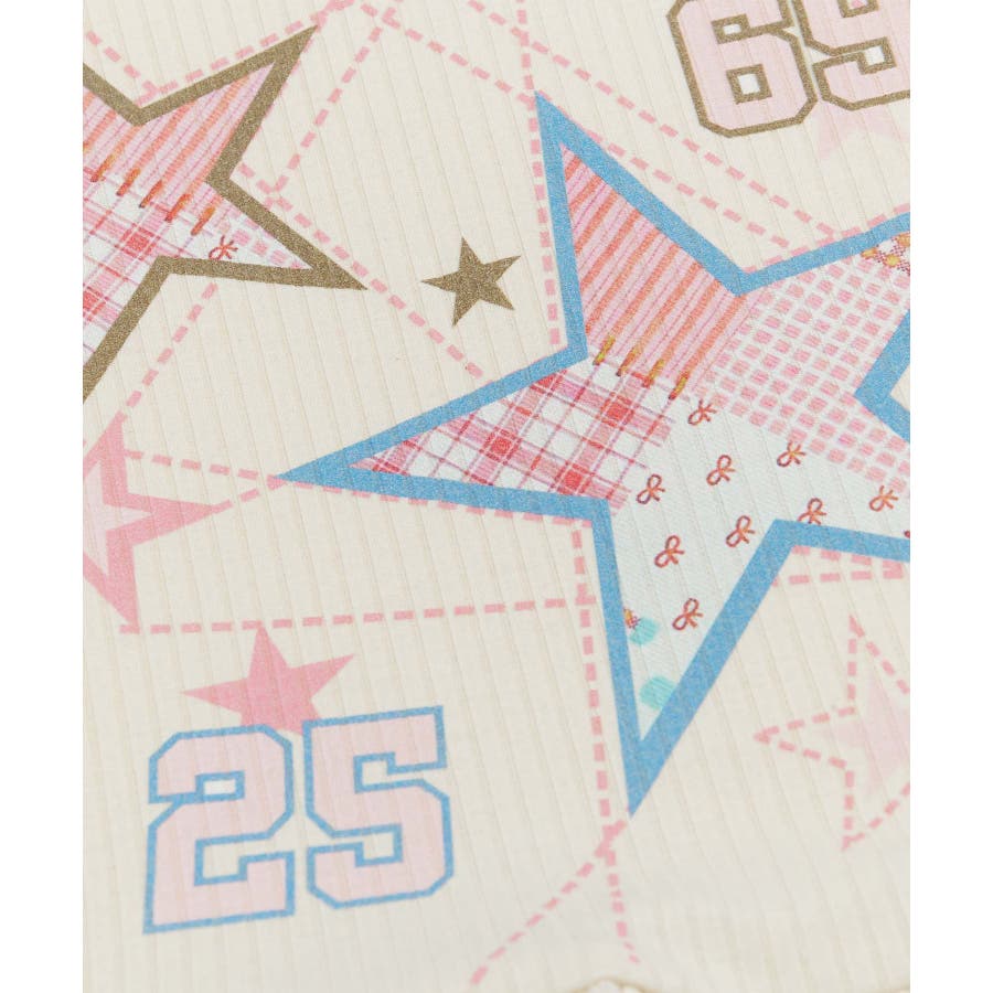 ポップな星プリントとガーリーな裾のフリルが可愛らしい印象を与えるカットソー。フロントに施された大小さまざまな星モチーフが目を引くデザイン。カラフルな色使いがポップな雰囲気を演出します。裾部分にはフリルをあしらい、ガーリーなアクセントをプラス。細部にこだわったステッチが、全体を華やかに仕上げています。柔らかなリブ素材を使用し、伸縮性が高く動きやすい着心地を実現。軽やかな生地感で、季節の変わり目や重ね着にもぴったりです。キュートなベージュとピンクの2色展開。どちらも明るく、女性らしさを引き立てるカラーリングです。デニムパンツやスキニーパンツと合わせて、カジュアルに仕上げるのがおすすめ。フレアスカートやチュールスカートと組み合わせると、さらにフェミニンな印象に。アクセサリーをプラスしてポップなスタイリングを楽しむのも◎