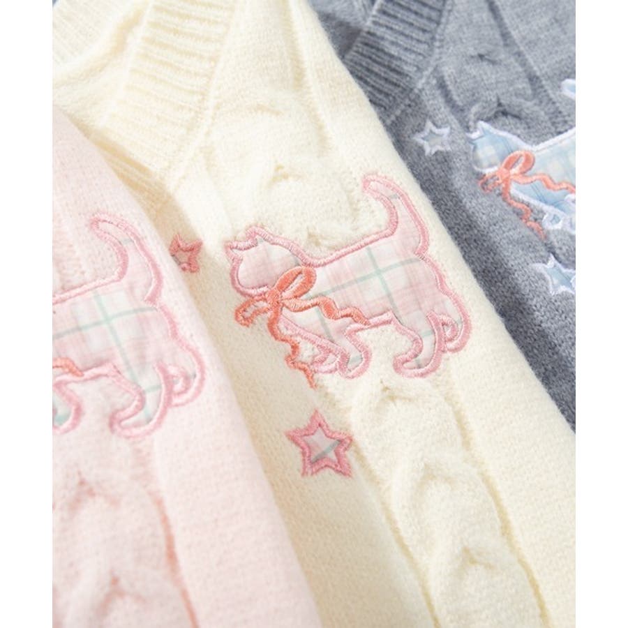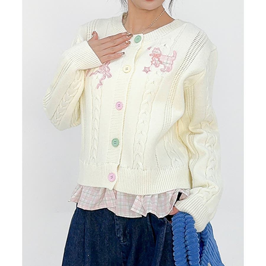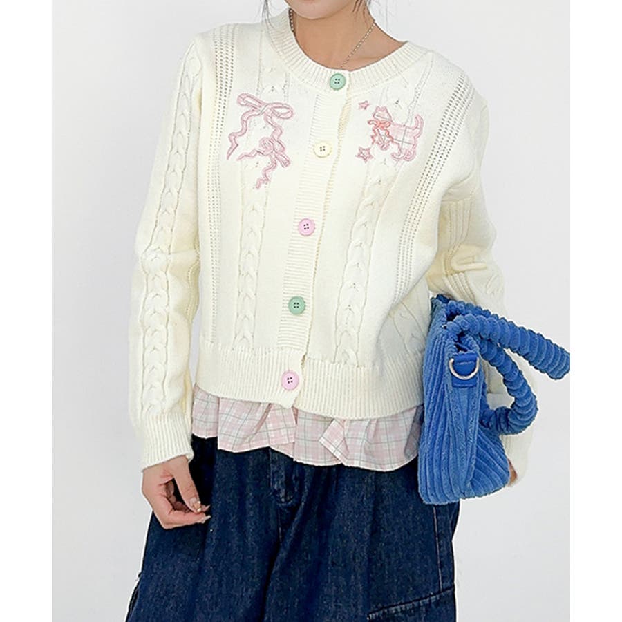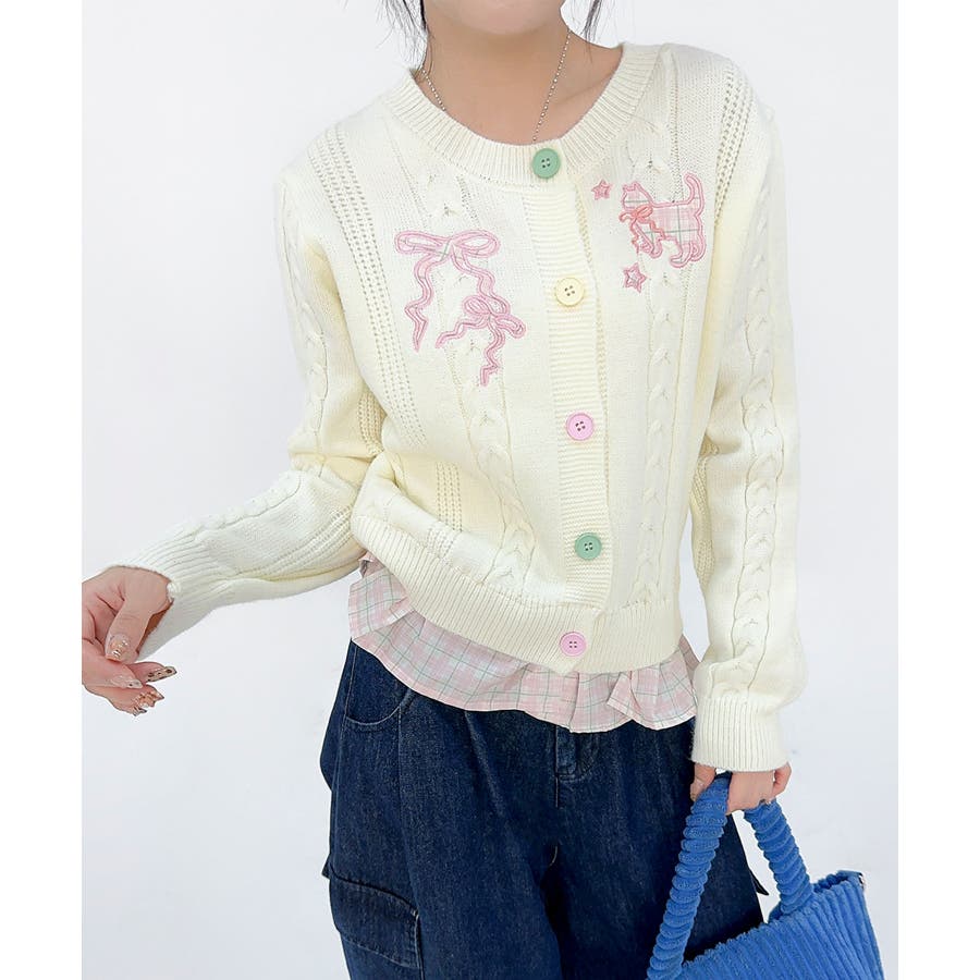 ガーリーなディテールがぎゅっと詰まった、刺繍リボン付きケーブル編みカーディガンが登場