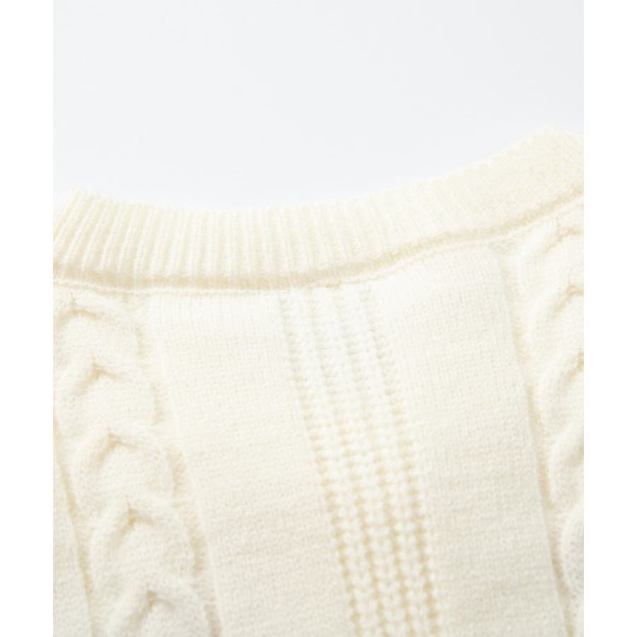やわらかなケーブルニットが女の子らしさを引き立て、デニム合わせでカジュアルに、スカート合わせでガーリーにと着回し自在。