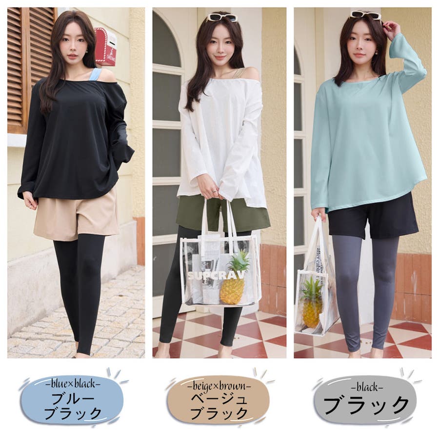 | カラー | ブルー・ブラック×レギンス / ベージュ・ブラック×レギンス / ブルー・ブラック×トレンカ / ベージュ・ブラック×トレンカ / ブラック×レギンス / ブラック×トレンカ |