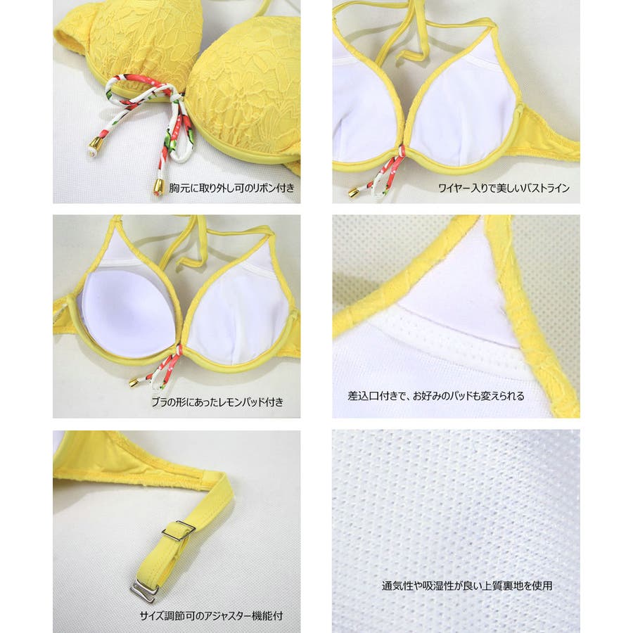 | 注意事項 | 1、水着本体は伸ばせば伸びる物ですし、個体差もございますので、上記の参照サイズ表と平置サイズ表をご参考にしてくださいませ。 2、一部分の水着につきまして、仕様により、肩紐部分やアンダー部分に左右対称の穴があります。品質上の問題ではございませんので、ご了承くださいませ。 3、こちらの商品は返品、交換を承っておりませんのであらかじめご了承下さい。 4、モニターの発色の具合によって実際のものと色が異なる場合がございますので、ご了承ください。 5、この商品は他サイトでも販売しております。在庫数の更新は随時行っておりますが、お買い上げいただいた商品が、品切れになってしまうこともございます。 水着レディース:ビキニ:3点セット | |||||||||||||||||||||||||