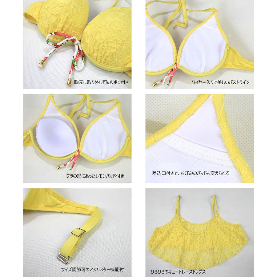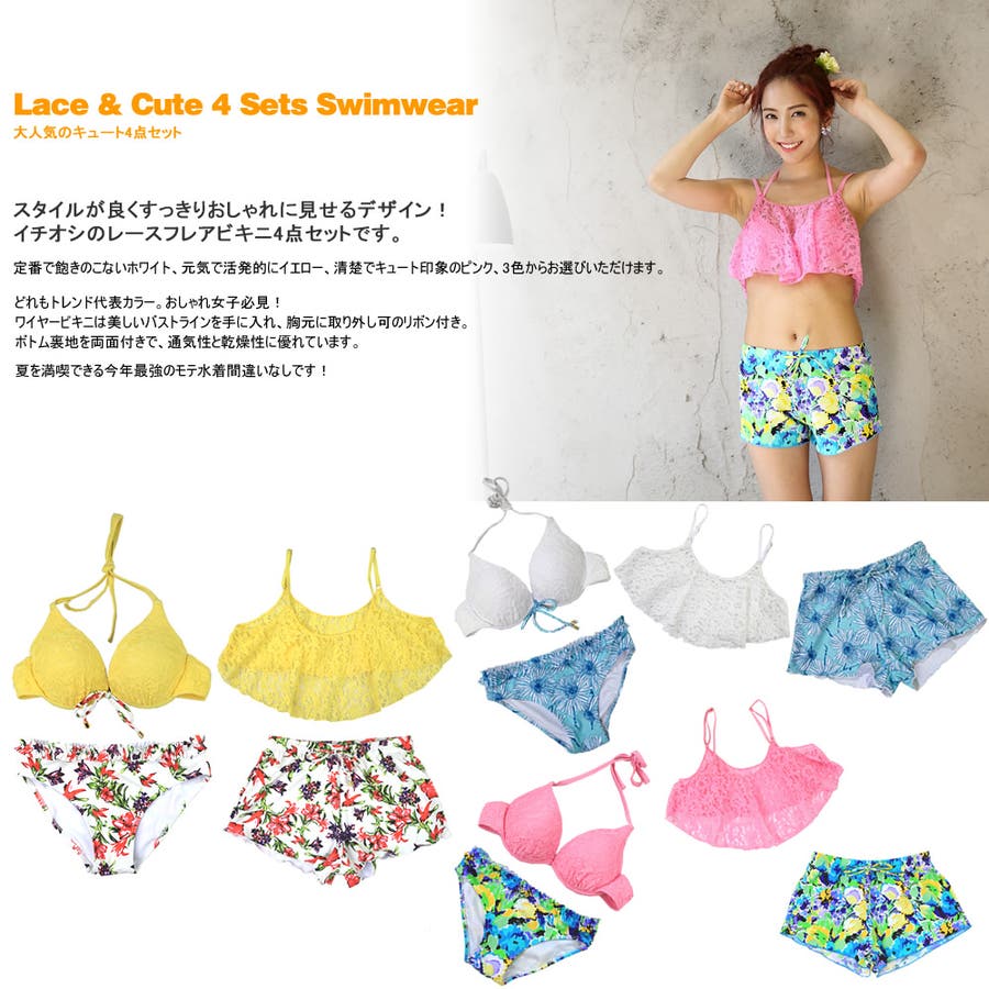 | 注意事項 | 1、水着本体は伸ばせば伸びる物ですし、個体差もございますので、上記の参照サイズ表と平置サイズ表をご参考にしてくださいませ。 2、一部分の水着につきまして、仕様により、肩紐部分やアンダー部分に左右対称の穴があります。品質上の問題ではございませんので、ご了承くださいませ。 3、こちらの商品は返品、交換を承っておりませんのであらかじめご了承下さい。 4、モニターの発色の具合によって実際のものと色が異なる場合がございますので、ご了承ください。 5、この商品は他サイトでも販売しております。在庫数の更新は随時行っておりますが、お買い上げいただいた商品が、品切れになってしまうこともございます。 水着レディース:ビキニ:4点セット | |||||||||||||||||||||||||