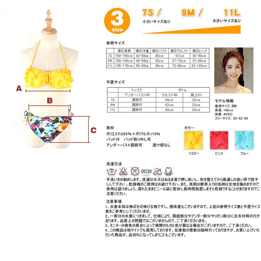 | 注意事項 | 1、水着本体は伸ばせば伸びる物ですし、個体差もございますので、上記の参照サイズ表と平置サイズ表をご参考にしてくださいませ。 2、一部分の水着につきまして、仕様により、肩紐部分やアンダー部分に左右対称の穴があります。品質上の問題ではございませんので、ご了承くださいませ。 3、こちらの商品は返品、交換を承っておりませんのであらかじめご了承下さい。 4、モニターの発色の具合によって実際のものと色が異なる場合がございますので、ご了承ください。 5、この商品は他サイトでも販売しております。在庫数の更新は随時行っておりますが、お買い上げいただいた商品が、品切れになってしまうこともございます。 水着レディース:ビキニ:2点セット | ||||||||||||||||||||