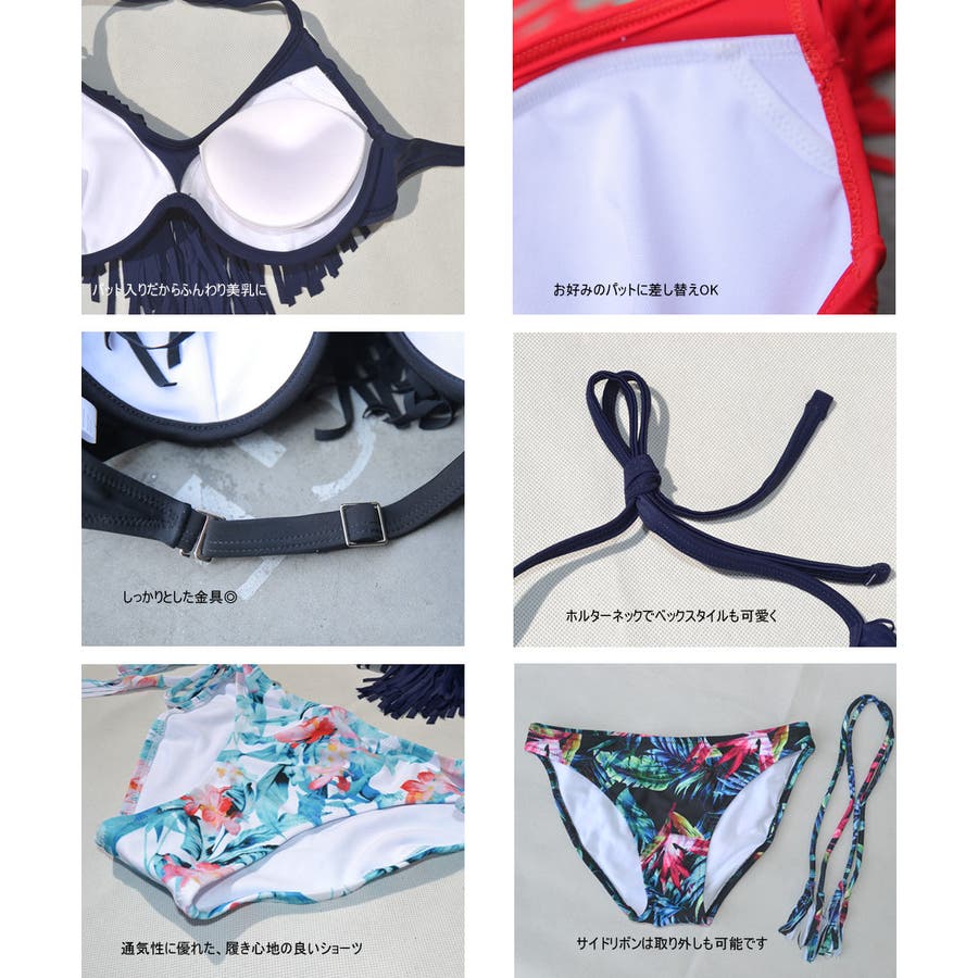 | 注意事項 | 1、水着本体は伸ばせば伸びる物ですし、個体差もございますので、上記の参照サイズ表と平置サイズ表をご参考にしてくださいませ。 2、一部分の水着につきまして、仕様により、肩紐部分やアンダー部分に左右対称の穴があります。品質上の問題ではございませんので、ご了承くださいませ。 3、こちらの商品は返品、交換を承っておりませんのであらかじめご了承下さい。 4、モニターの発色の具合によって実際のものと色が異なる場合がございますので、ご了承ください。 5、この商品は他サイトでも販売しております。在庫数の更新は随時行っておりますが、お買い上げいただいた商品が、品切れになってしまうこともございます。 水着レディース:ビキニ:2点セット | ||||||||||||||||||||