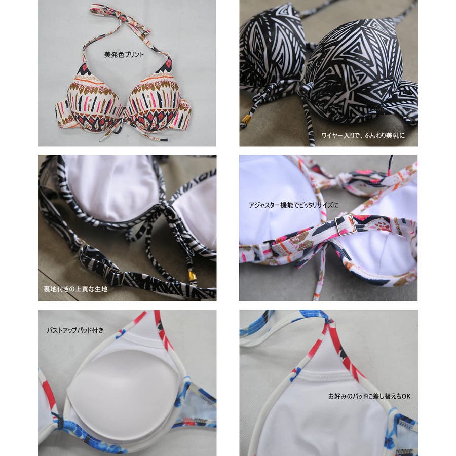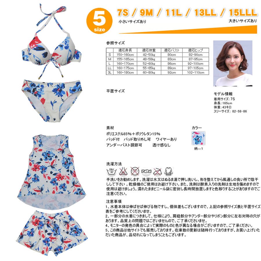 | 注意事項 | 1、水着本体は伸ばせば伸びる物ですし、個体差もございますので、上記の参照サイズ表と平置サイズ表をご参考にしてくださいませ。 2、一部分の水着につきまして、仕様により、肩紐部分やアンダー部分に左右対称の穴があります。品質上の問題ではございませんので、ご了承くださいませ。 3、こちらの商品は返品、交換を承っておりませんのであらかじめご了承下さい。 4、モニターの発色の具合によって実際のものと色が異なる場合がございますので、ご了承ください。 5、この商品は他サイトでも販売しております。在庫数の更新は随時行っておりますが、お買い上げいただいた商品が、品切れになってしまうこともございます。 水着レディース:ビキニ:4点セット | ||||||||||||||||||||||||||||||