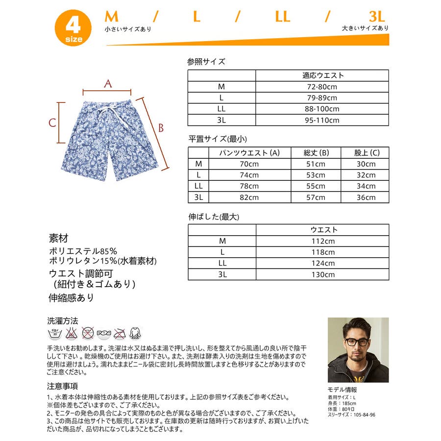 | 注意事項 | 1、水着本体は伸ばせば伸びる物ですし、個体差もございますので、上記の参照サイズ表と平置サイズ表をご参考にしてくださいませ。 2、モニターの発色の具合によって実際のものと色が異なる場合がございますので、ご了承ください。 3、この商品は他サイトでも販売しております。在庫数の更新は随時行っておりますが、お買い上げいただいた商品が、品切れになってしまうこともございます。 |