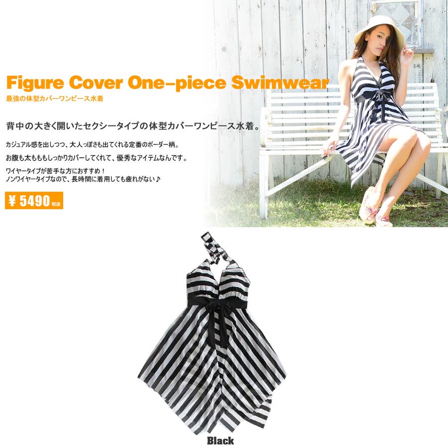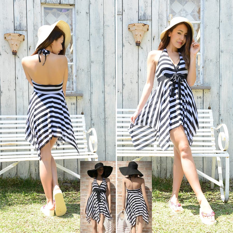水着 レディース、ボーダー柄、水着 ワンピース、水着体型カバー、大きいサイズあり