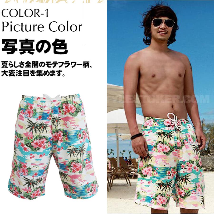 水着メンズ、ビーチパンツ、トランクス、ハーフパンツ、花柄、カジュアル、短パン、大…