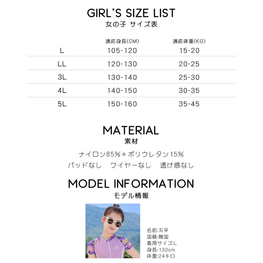 適応身長:M:105-120cm/L:120-130cm/LL:130-140cm/3L:140-150cm/4L:150-160cm