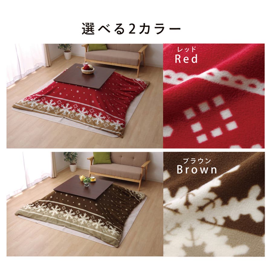 ノルディック柄のこたつ布団カバーです。素材には軽量であたたかいフリース素材を使用しています。すっぽりと布団を入れられるファスナー付きです。洗濯機で丸洗い可能(ネット使用)で、いつでも清潔にご使用頂けます。