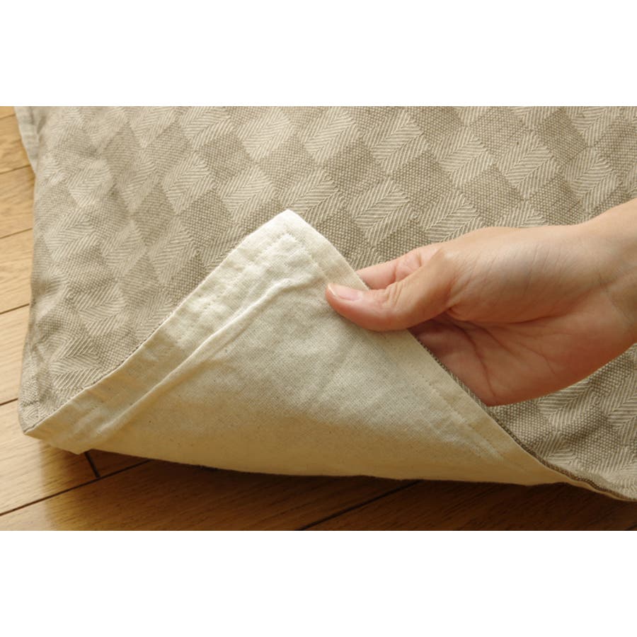 生地にインド綿を使用したこたつカバーです。シンプルモダンをテーマにデザインしておりますので、少し大人で素材感のあるお部屋のイメージにぴったりです。インド産の綿生地を使用しております。また、綿はポリエステルに比べ、冬場気になる静電気も起こりにくく、繊維の中でも特に肌触りがよいのが特徴です。
