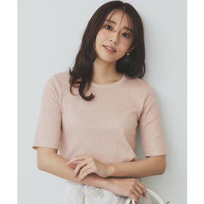 ラメリブクルーネックトップス【洗濯機洗い可】
