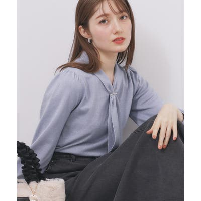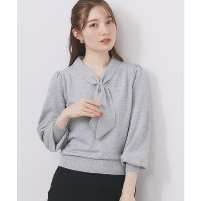 ゴールドパーツ付きボウタイニット【洗濯機OK】《10col/XS~LL》