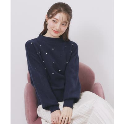 ウール混の柔らかな素材にフェイクパールが散りばめられたボトルネックニット
