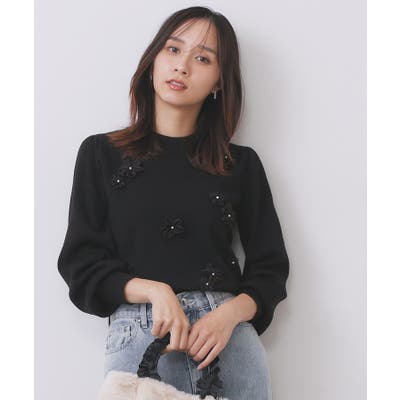 ・立体的なお花モチーフが、ニット全体に施され、視覚的なアクセントとなっています。