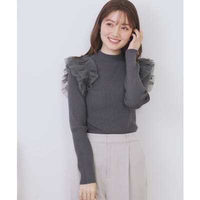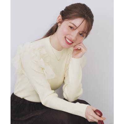 ショルダーチュールが主役級に映えるフリルハイネックニット