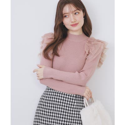 ショルダーチュールフリルハイネックニット【洗濯機OK/抗ピル】