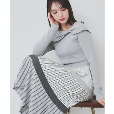 ・ランダムボーダーにプリーツ風の柄編みが目を引く、個性的で洗練されたデザイン。